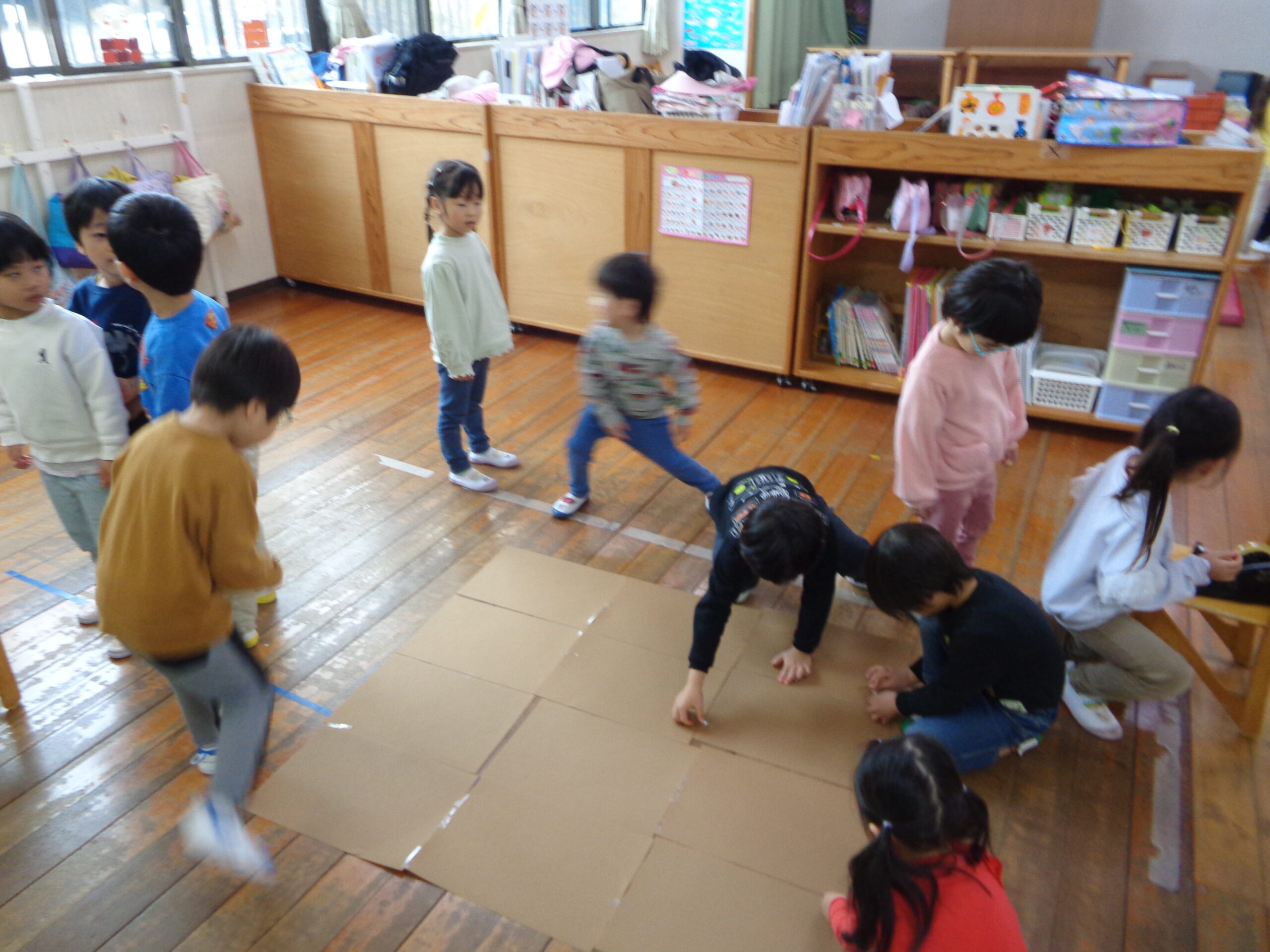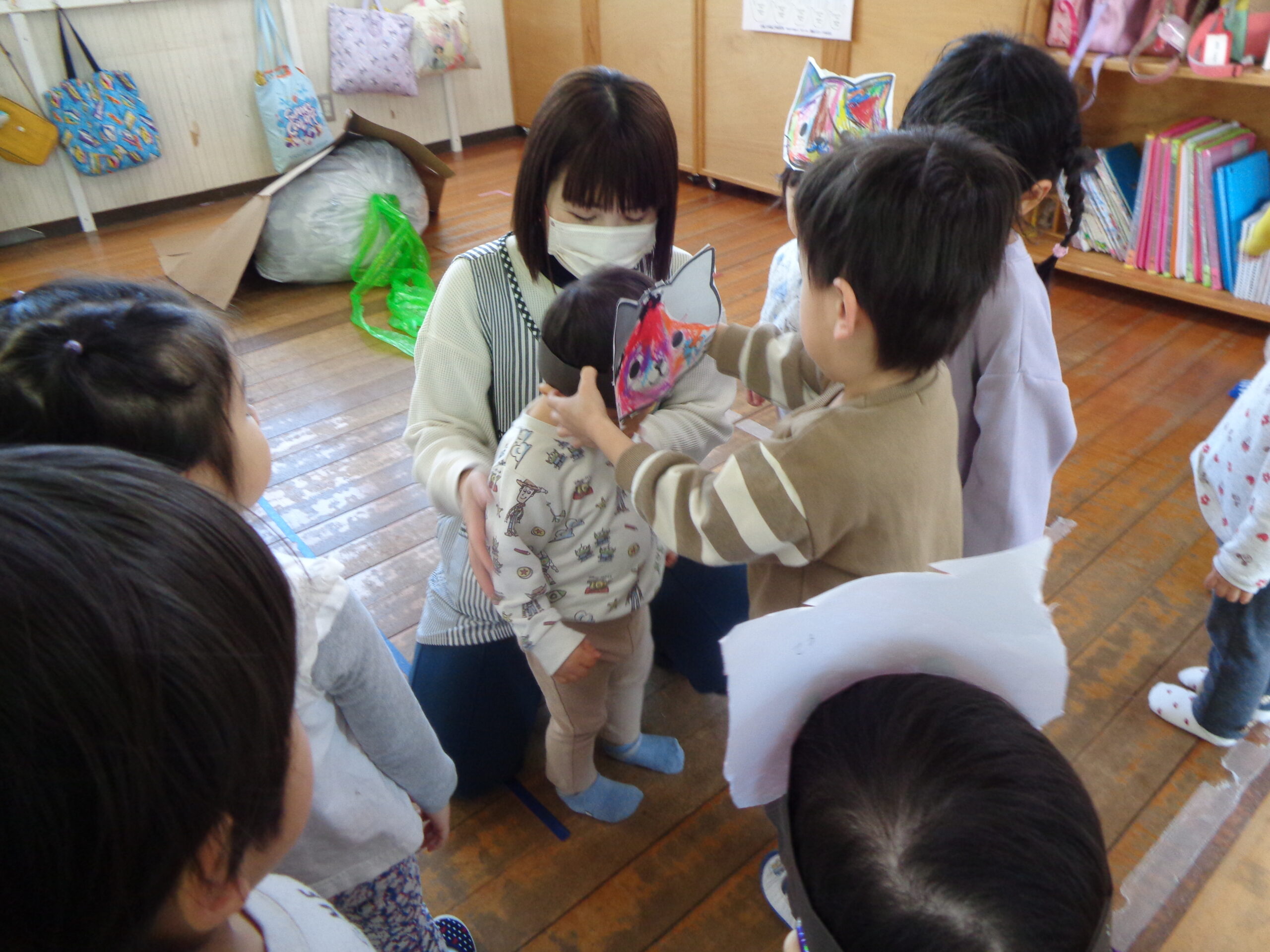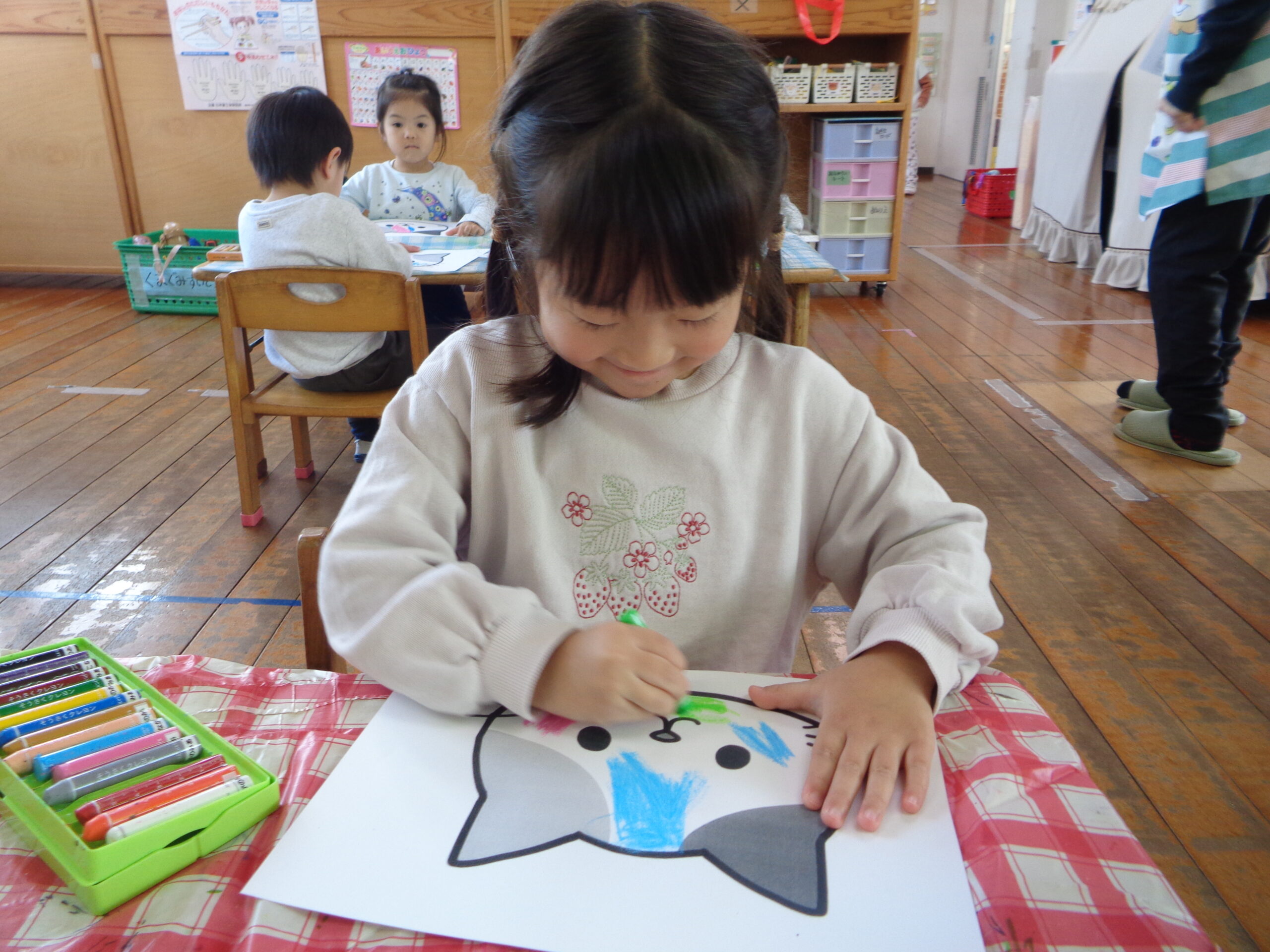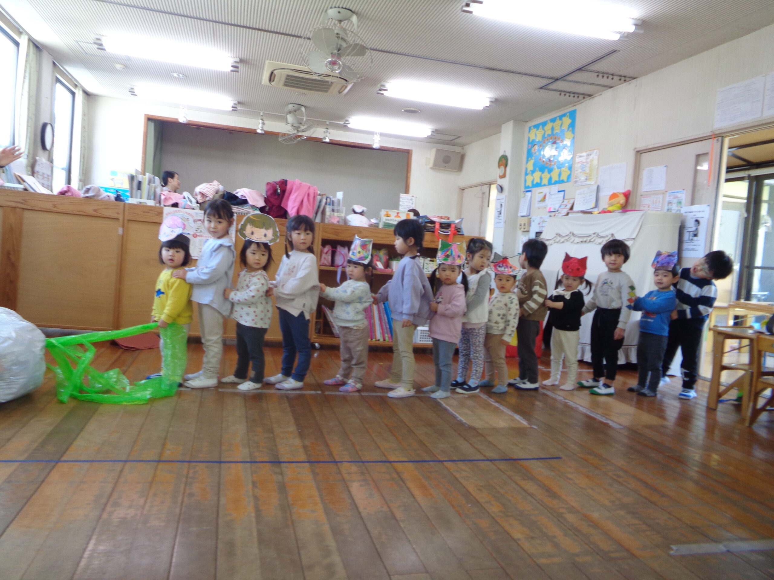 2026.02.19 ✩おおきなかぶ✩ 絵本を見て慣れ親しんでいたおおきなかぶ。いつも声に出して楽しんでいたこともあり、実際にやってみようと劇遊びごっこが決定! お面作り、土作り、種も自分たちで作り、役も子ども会議で決めた自分のしたい役を演じましたよ! 園長先生やうさぎ組さんも遊びに来て下さり、ドキドキしつつも楽しんで台詞を言ってましたよ! 最後はうさぎ組さんも一緒に劇遊びごっこに参加し、交流も深めながら楽しい時間を過ごせました! 友だちと協力して作り上げた達成感を味わったくま組さんでした💚 真剣な表情で塗り絵にも取り組みましたよ!