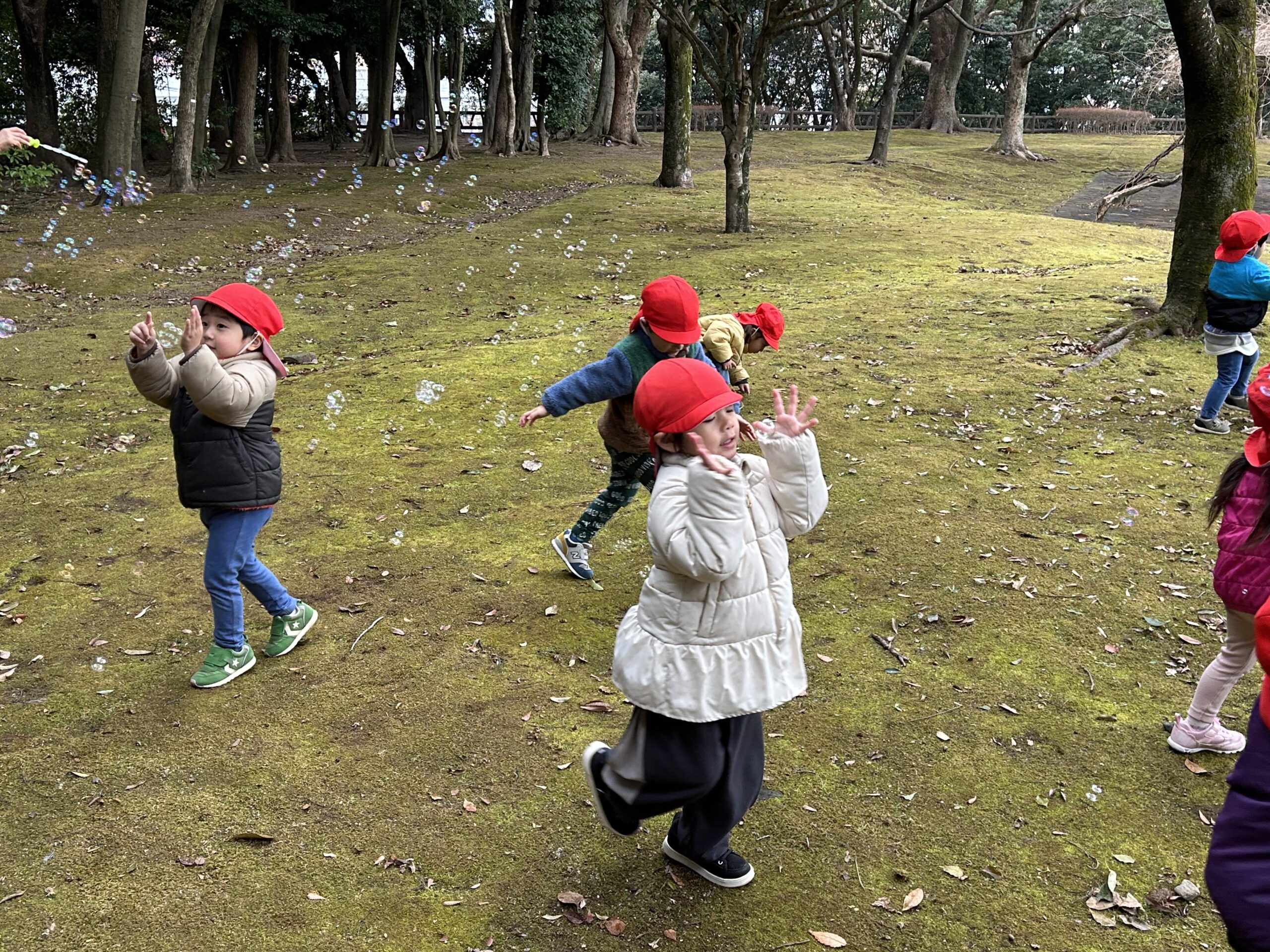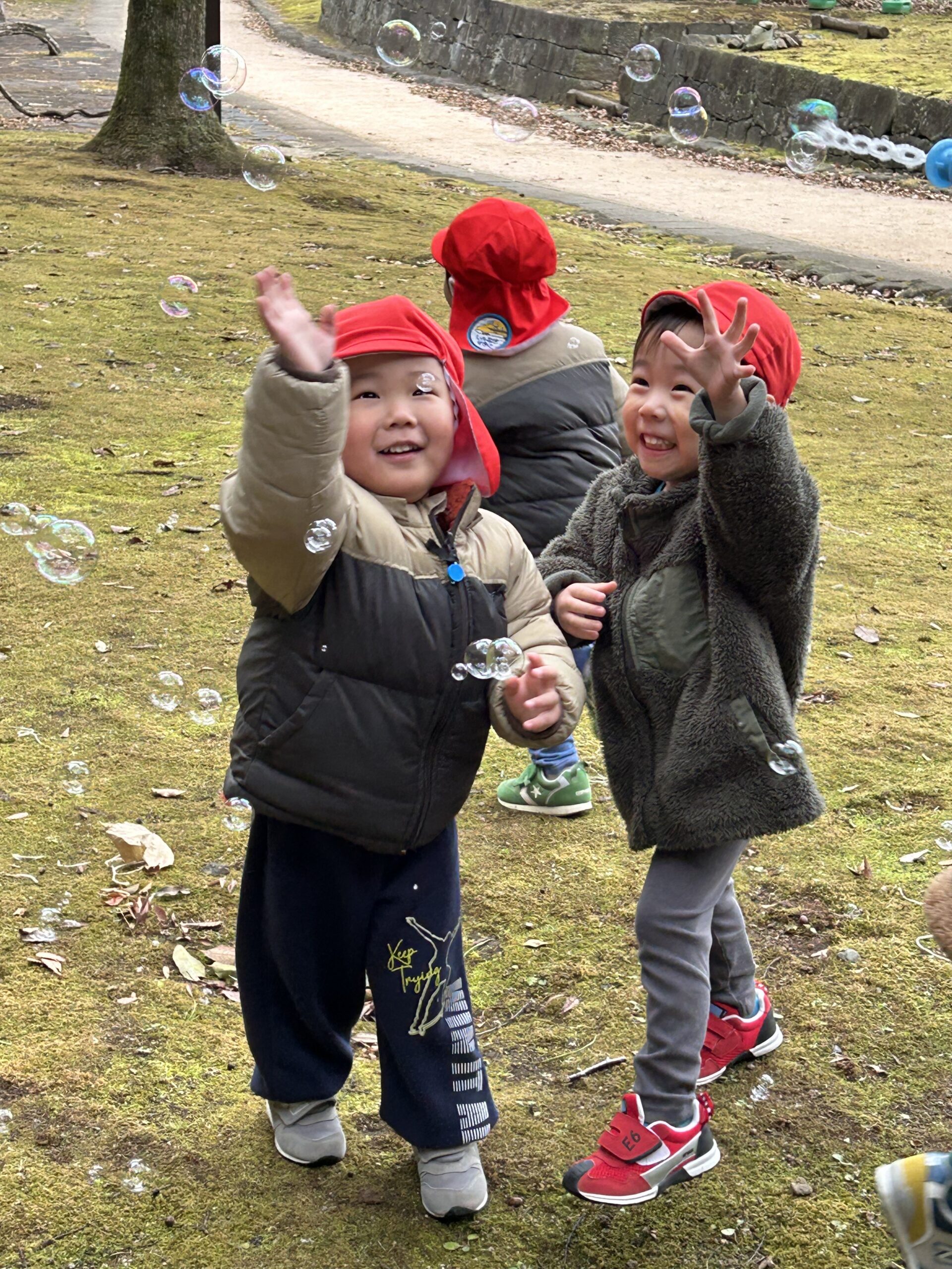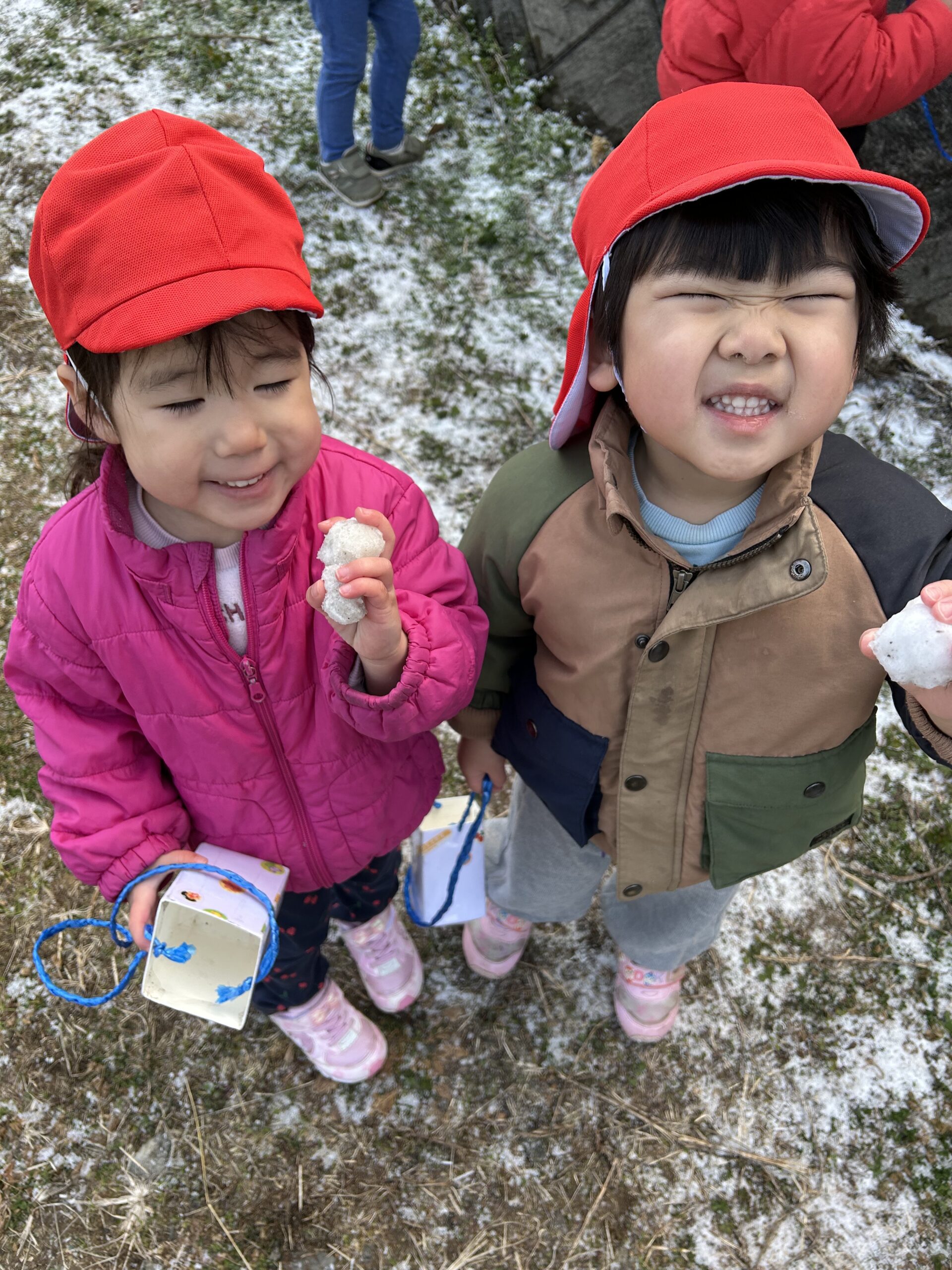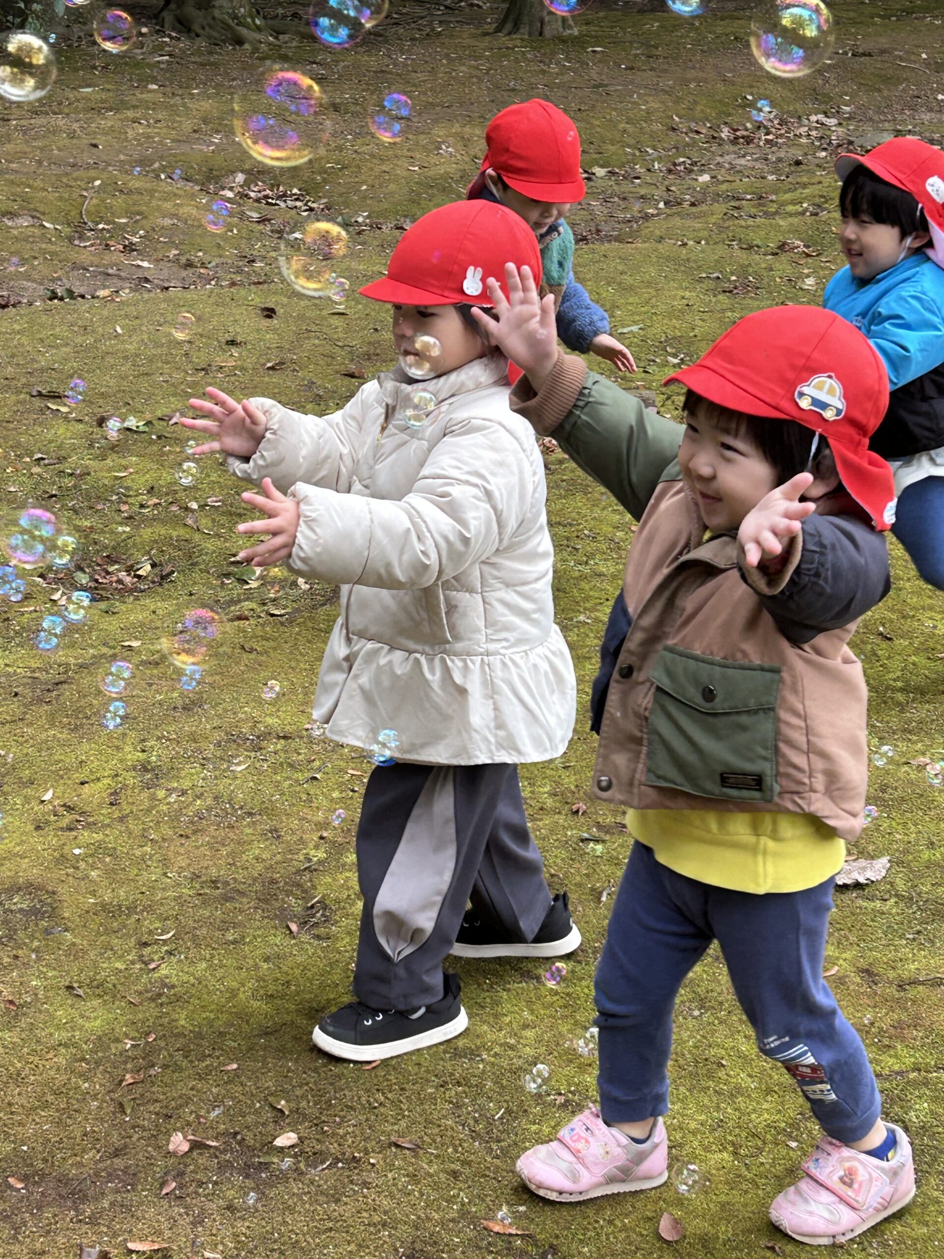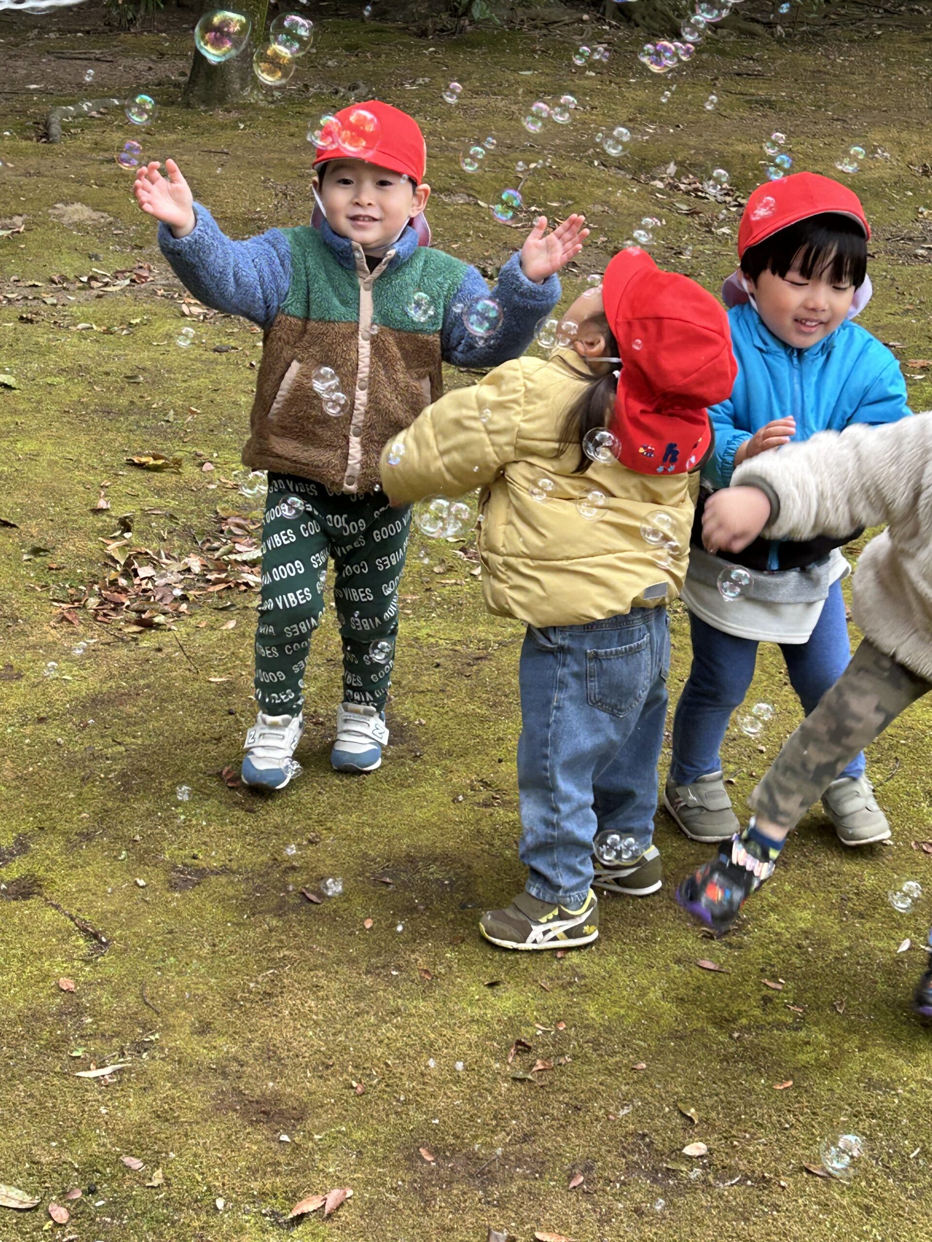 2026.02.12 たぬき組LIFE②🌟 発表会時、以上児さんが身に付けている衣装を利用し、おめかししてみました!自分で好きな衣装を選ぶ楽しさを味わい、元気にダンスやゲームをして沢山着こなしましたよ💚 散歩先でシャボン玉を久しぶりにしてみました!公園での開放的な環境で満足できるまで楽しみました🌼 雪が降った翌日に雪遊びも満喫しましたよ⛄