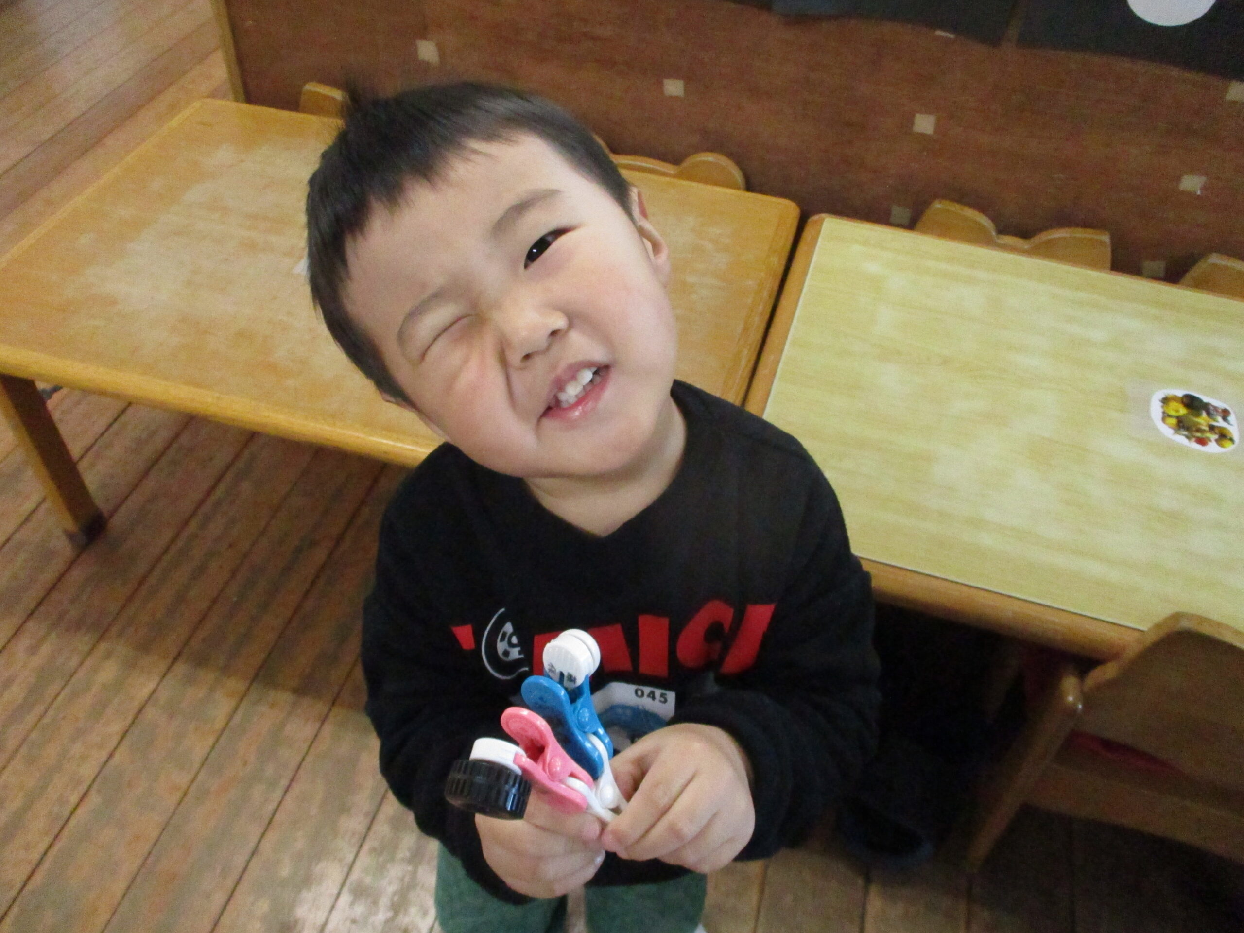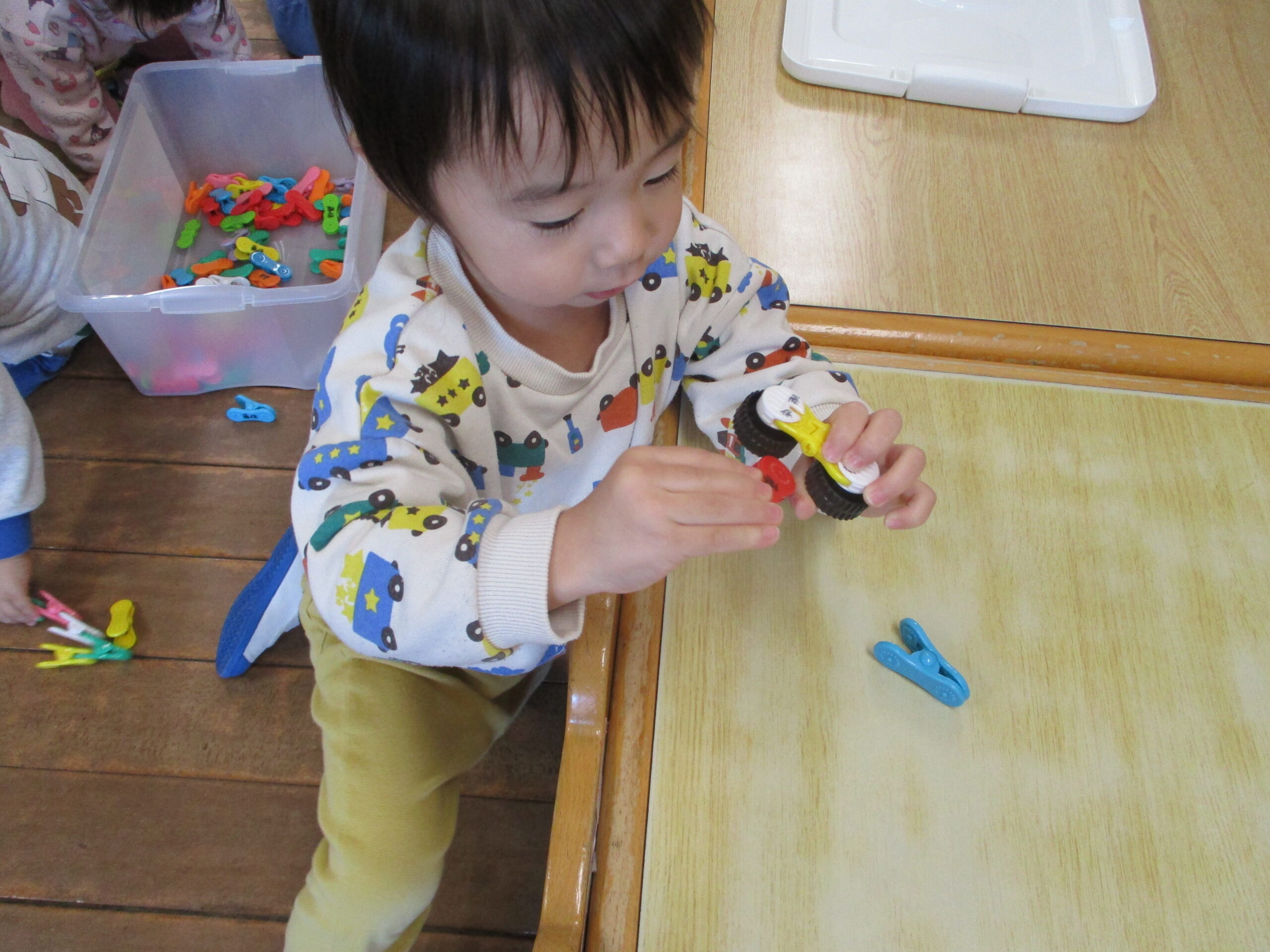 2026.01.19 たぬき組LIFE⛄ 新年を迎え、たぬき組さんも初詣に出掛けました!お参りもきちんと行い、良いスタートが切れました! 12月にサンタさんから頂いた「アイクリップ」という玩具を初めて使用しました!新しい玩具に目を輝かせていました🌟説明書を見ながら作品作りにも挑戦し、集中して楽しめていましたよ💚