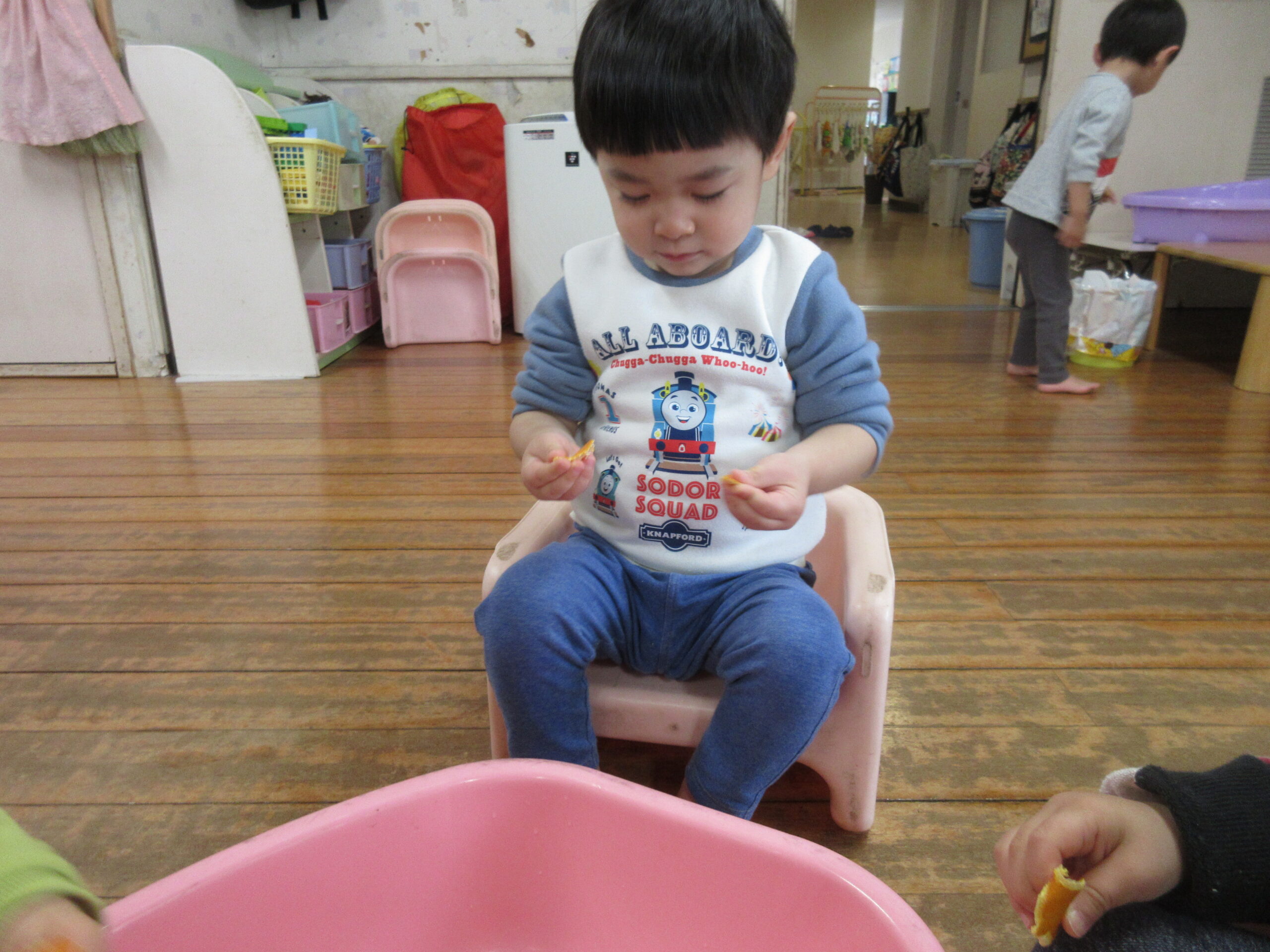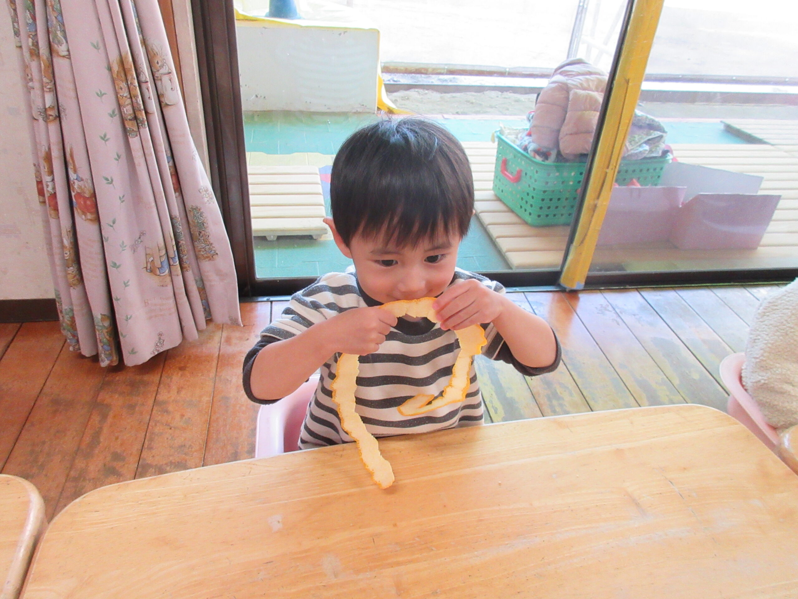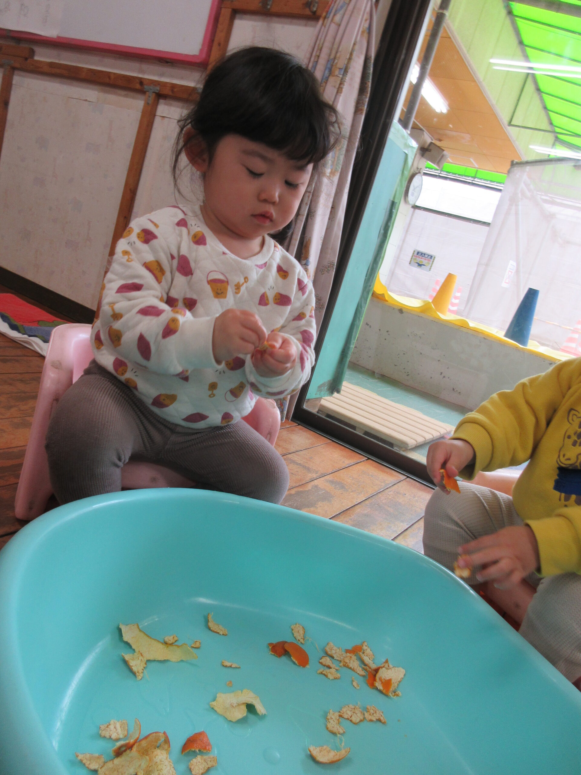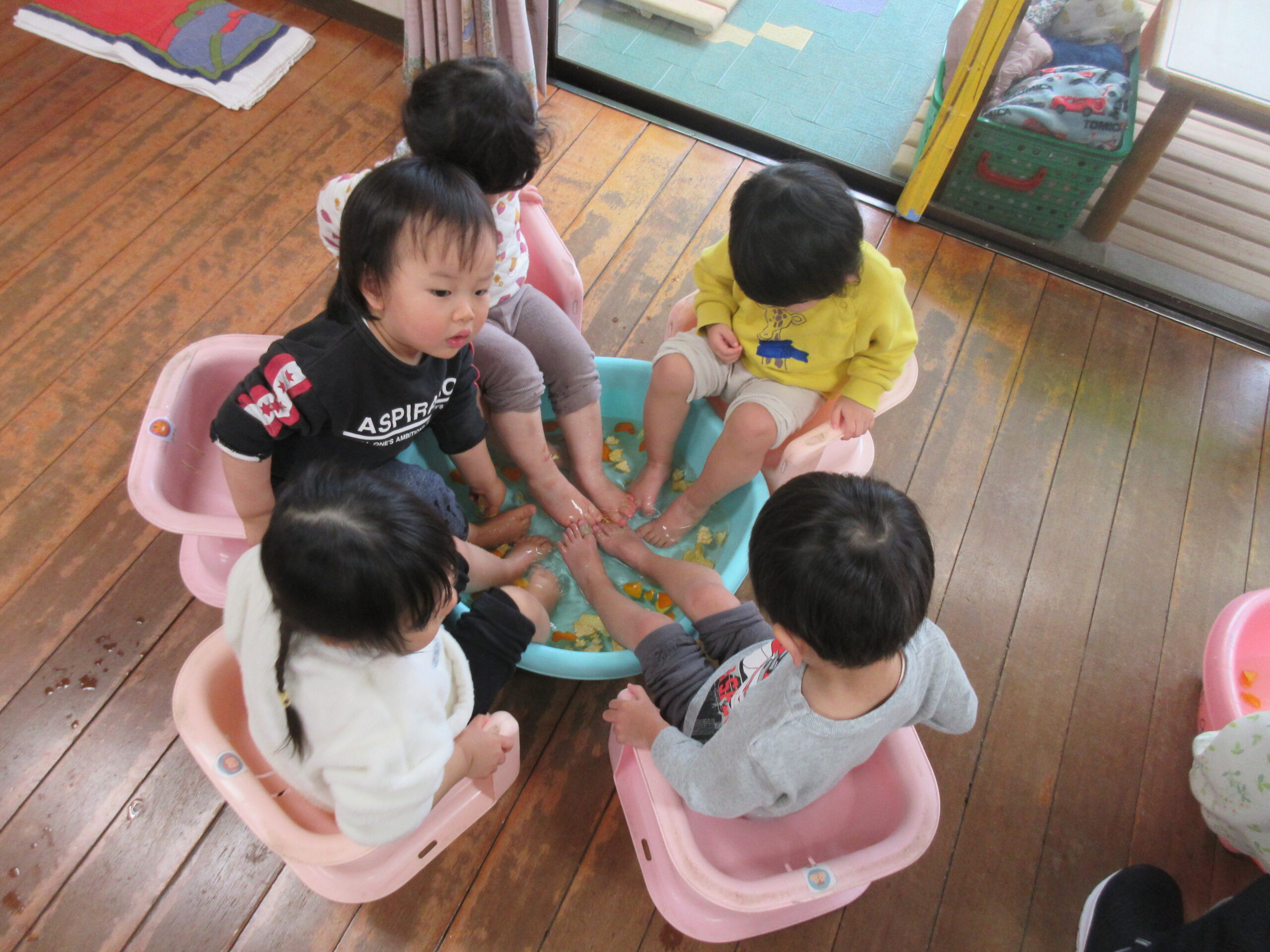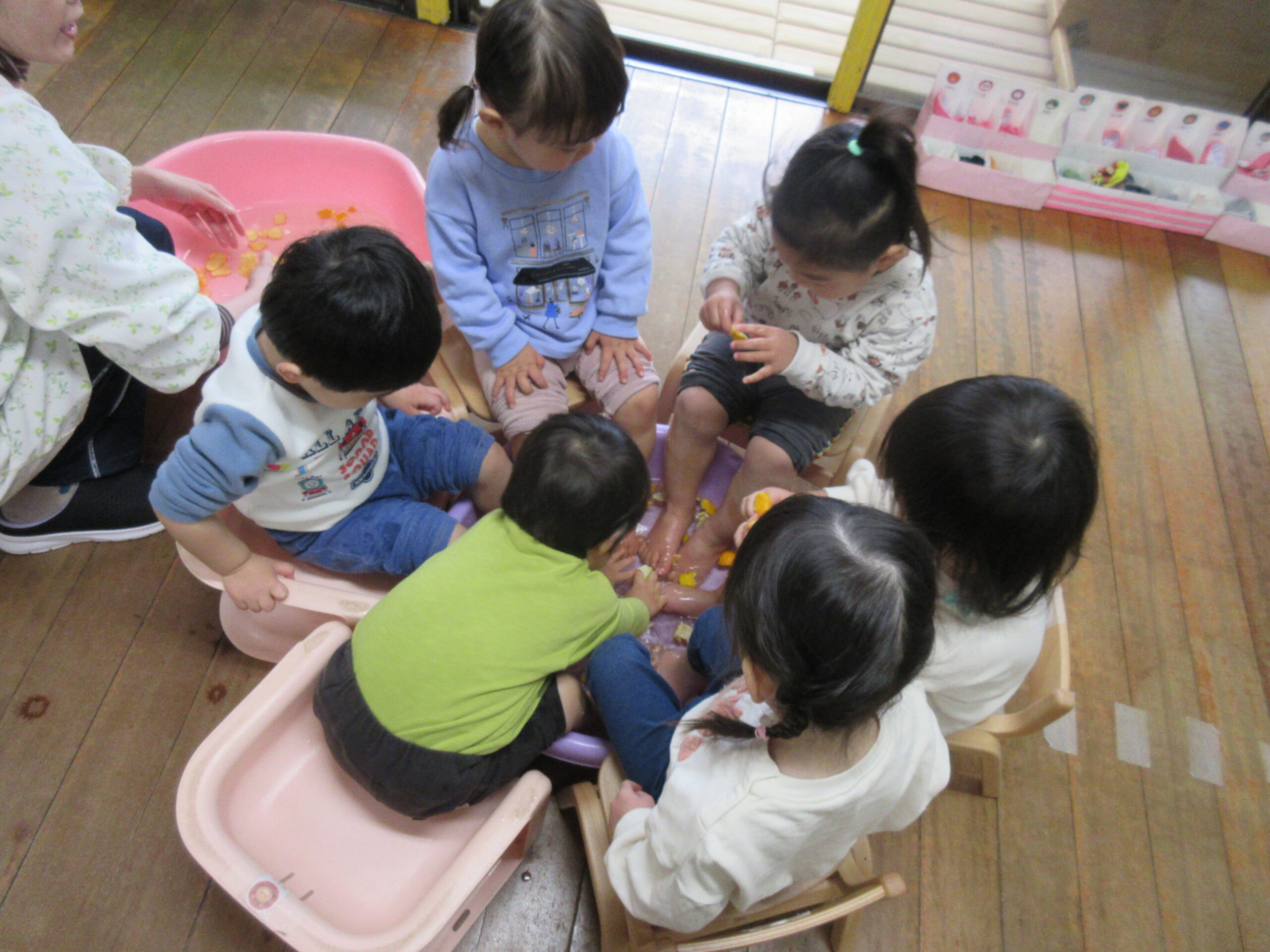 うさぎ組で人気の絵本📖「もったいないばあさん」に出てくるぽっかぽかのみかん風呂を再現してみました✨