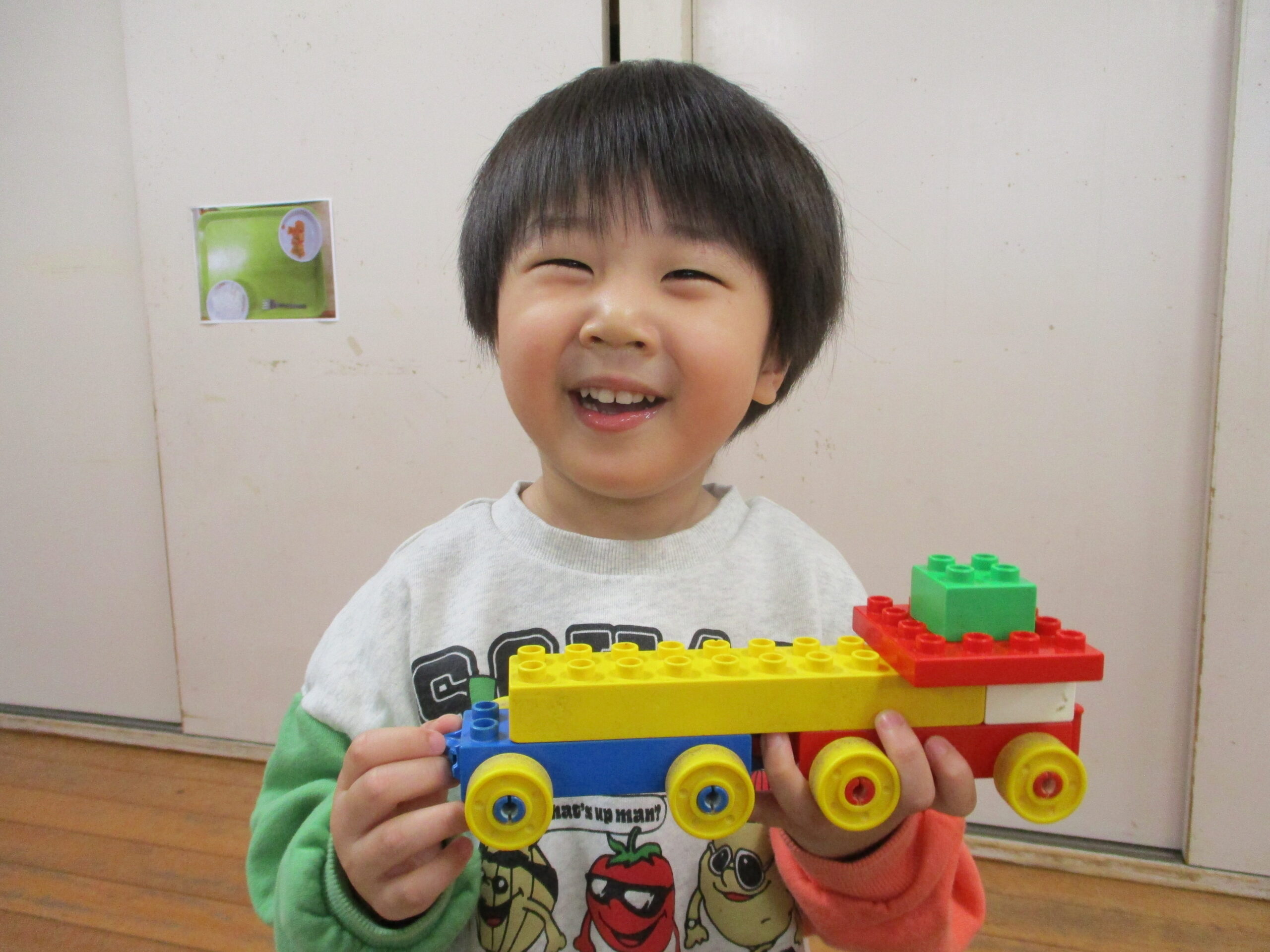 小物干しハンガーを利用して、いちご狩りに挑戦!1ゲーム30秒で、洗濯ばさみの先を摘んで取り外すルールを設定しました。個数を稼ぐにはどのようにしたらよいか、それぞれの個性が見られ、大変盛り上がりました💚おうち時間にもピッタリなので是非ご活用下さい🍓