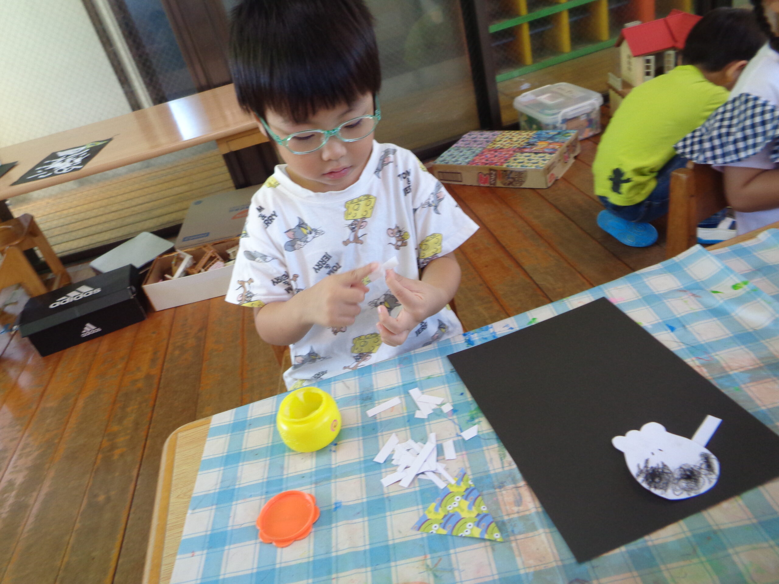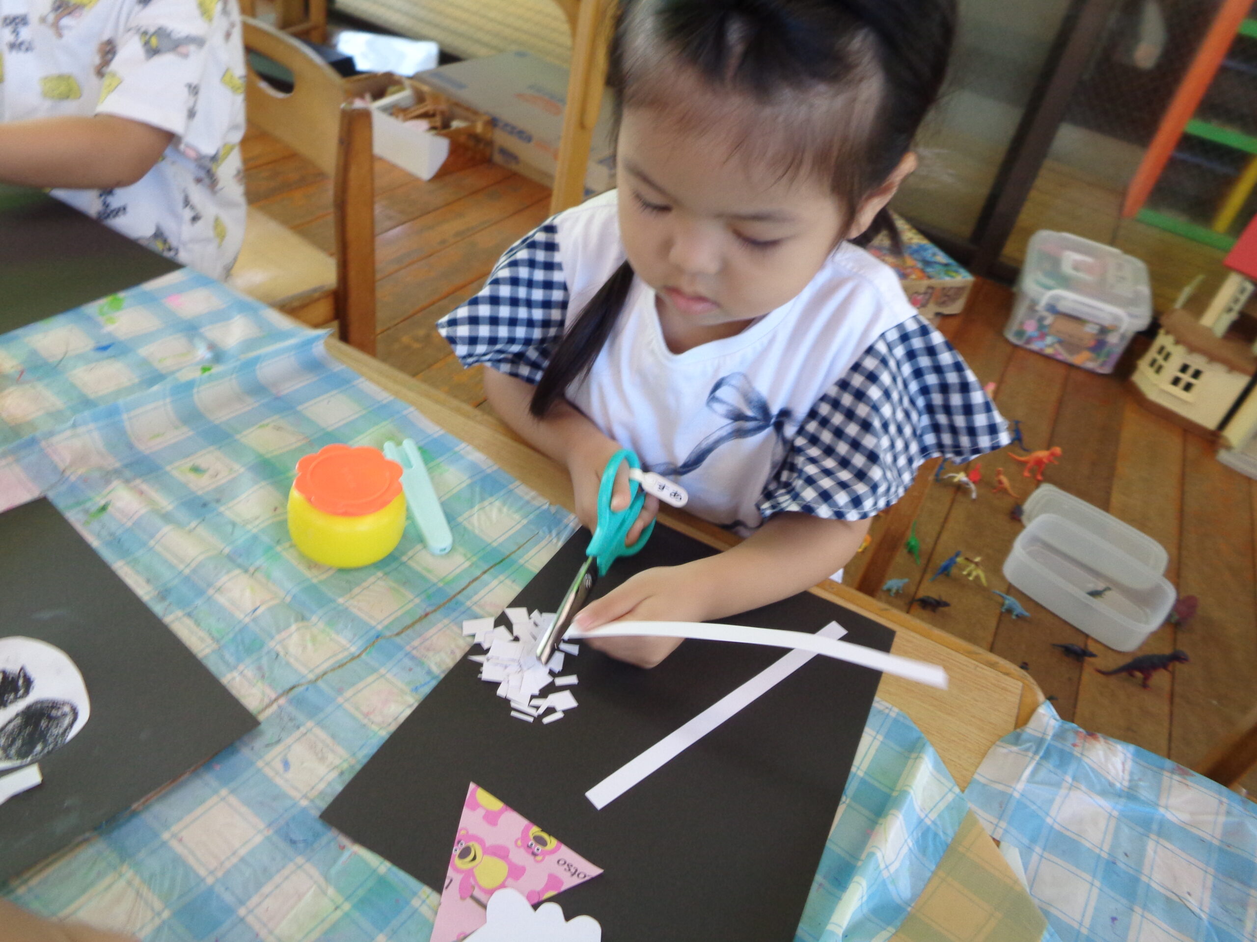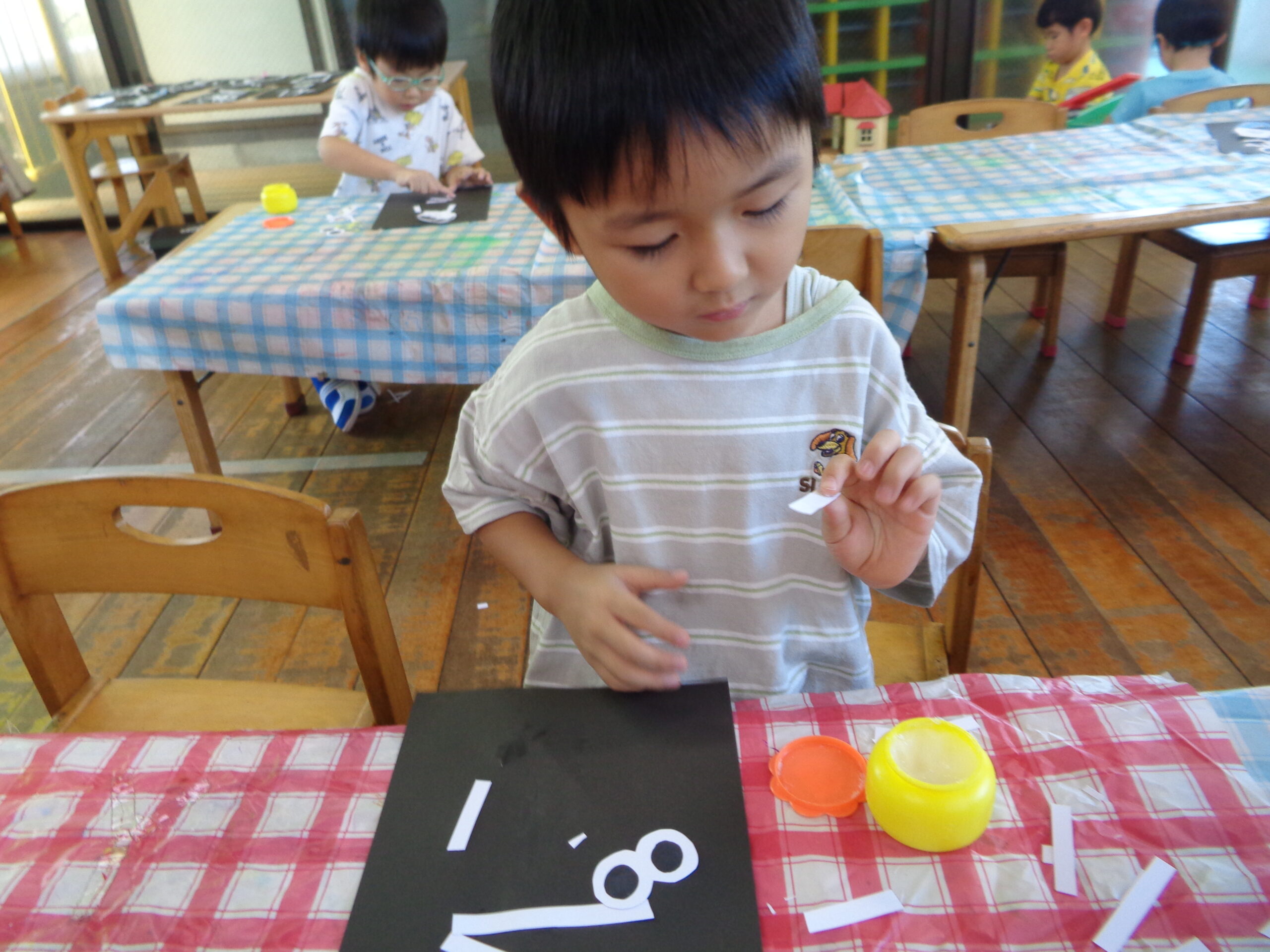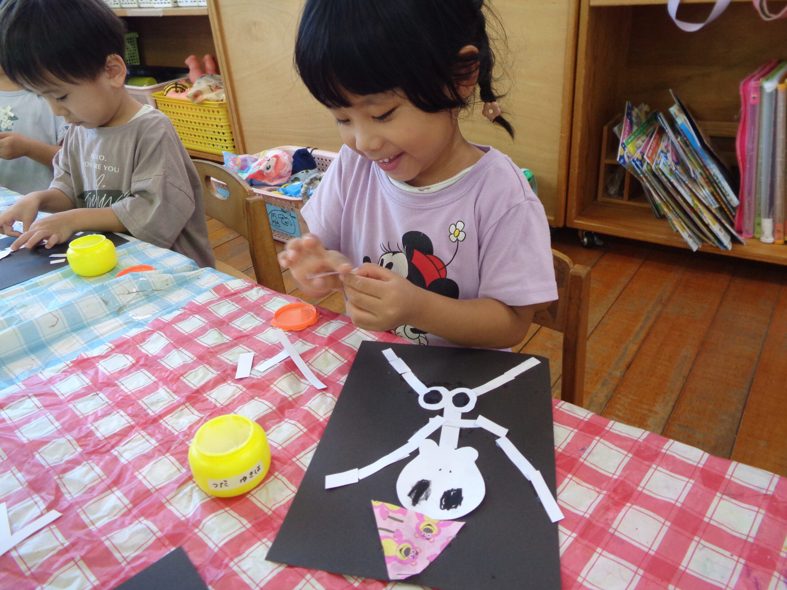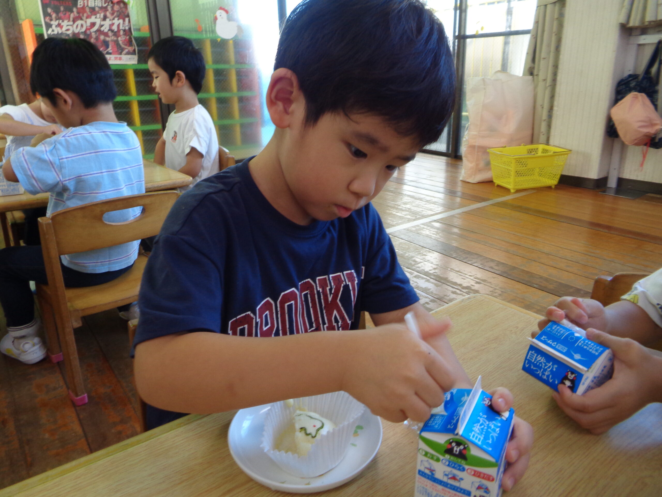 2025.10.23 パックデビュー🥛 進級に向け、牛乳パックデビューをしたくま組さん!「えーきりんさんみたい!」とわくわくしていました。ストローを出すのにも最初は一苦労…指先を使って頑張って取り出していました!パックでの飲む牛乳はどこかお兄さん・お姉さんになった特別な味でした💚 お・ま・け♡ ハロウィン製作でガイコツを作りました!個性豊かな作品が完成🎃