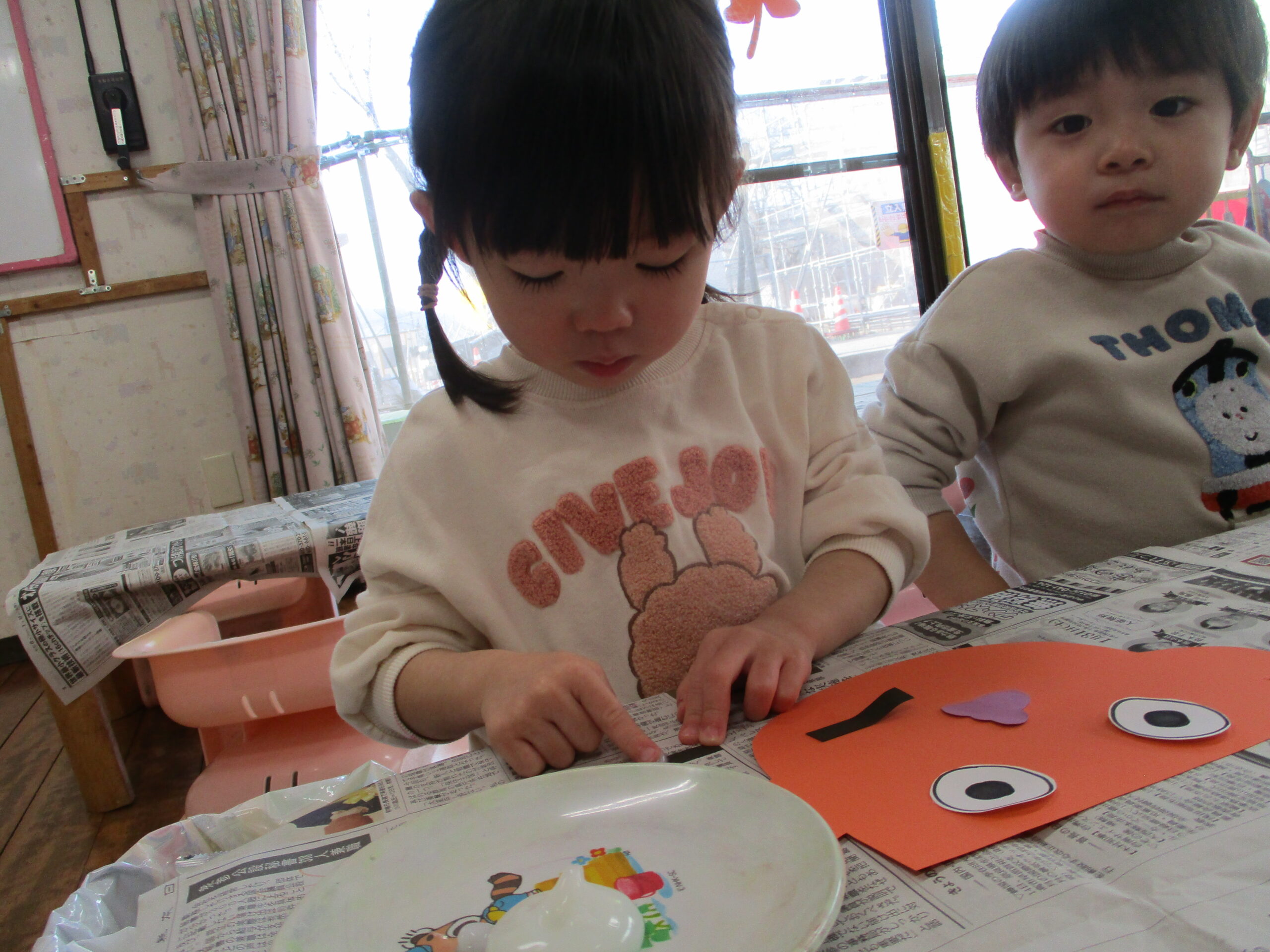 「こわーい」「やったー!」と描いたりのりで貼ったりしながら様々な感想が聞こえてきました✨