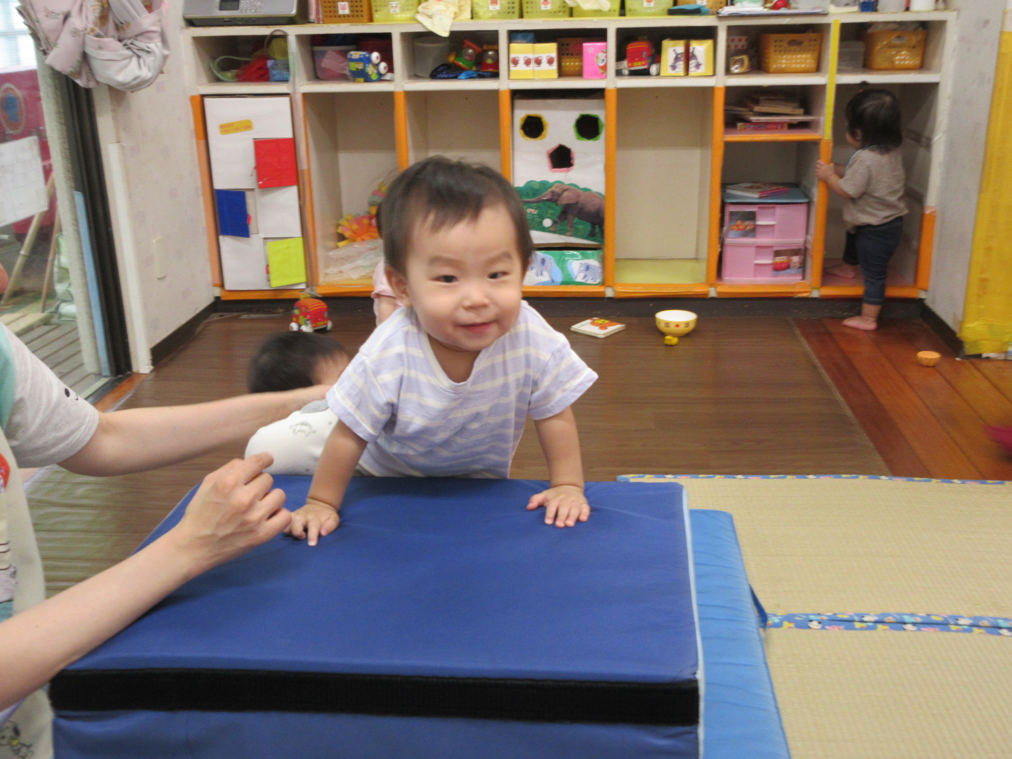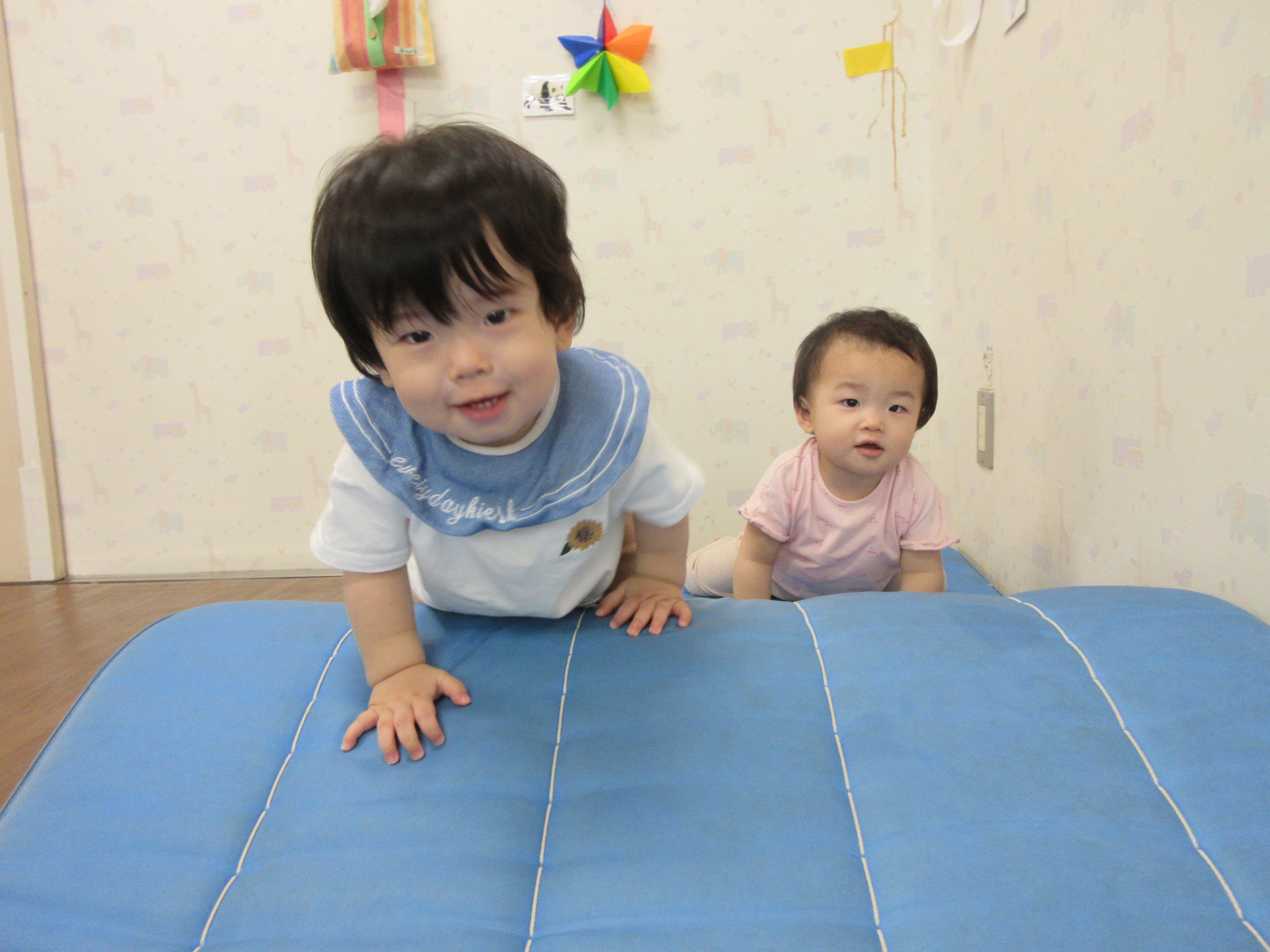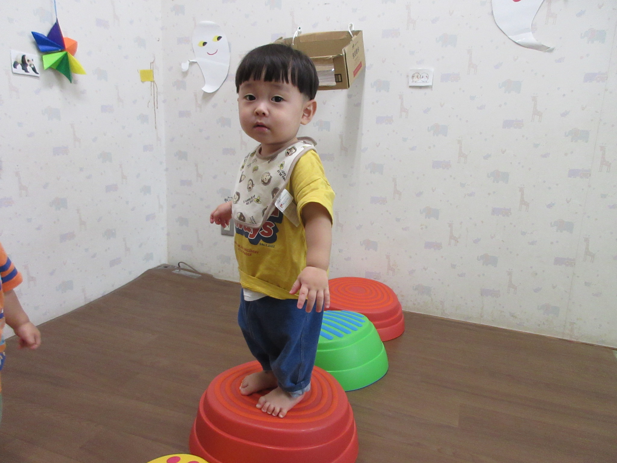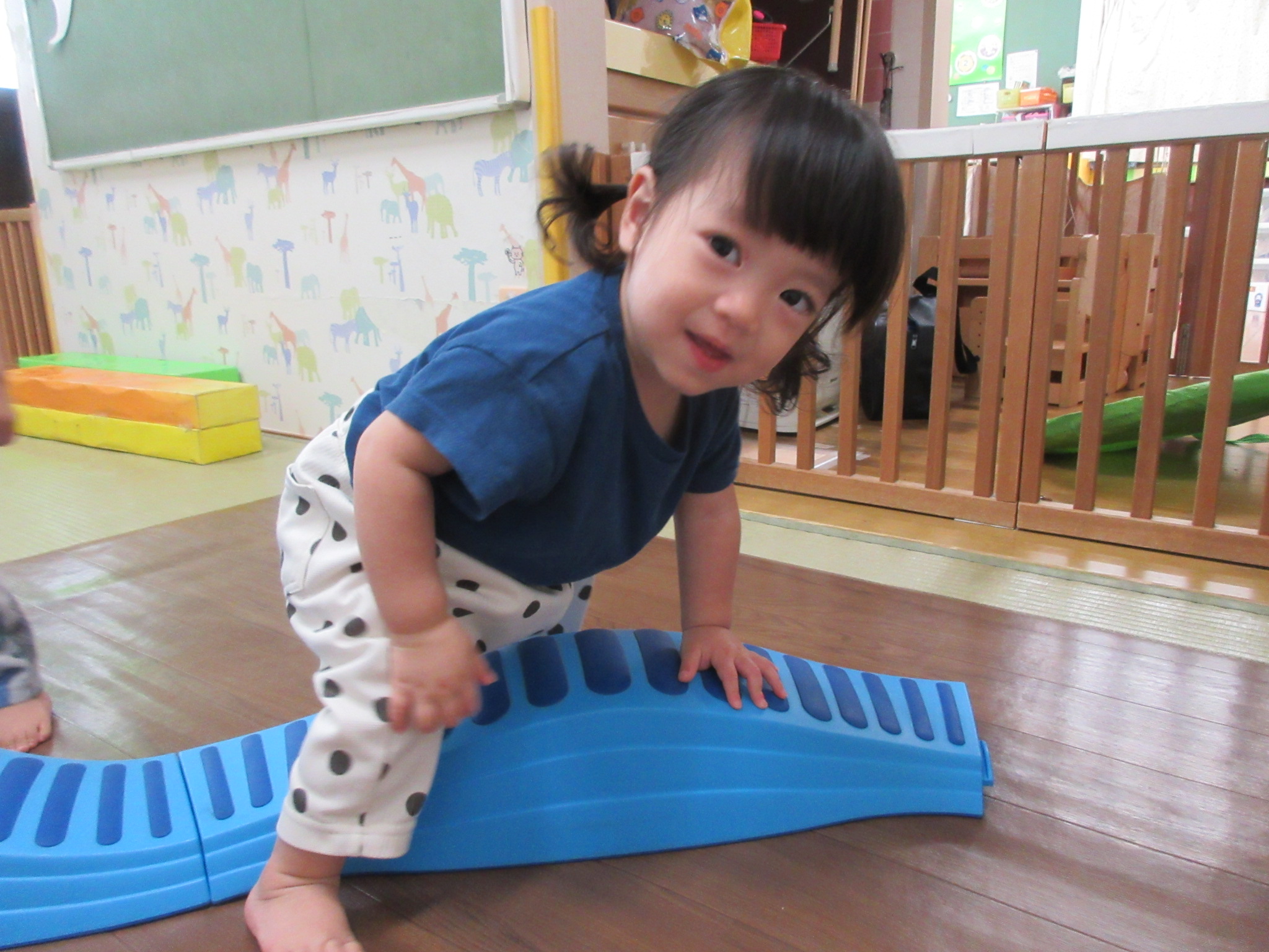 2025.10.11 運動あそび大好き! 体を動かすことが大好きなりす組さん♡ 跳び箱やマット、ウェーブバランスなどでサーキットコースを作り、お部屋でも思う存分に楽しんでいますよ🎵 とび石積み木では、バランスを取りながら上手に乗れます✨ 歩くことが上手になってきて、園庭でもたくさん身体を動かしてます💙