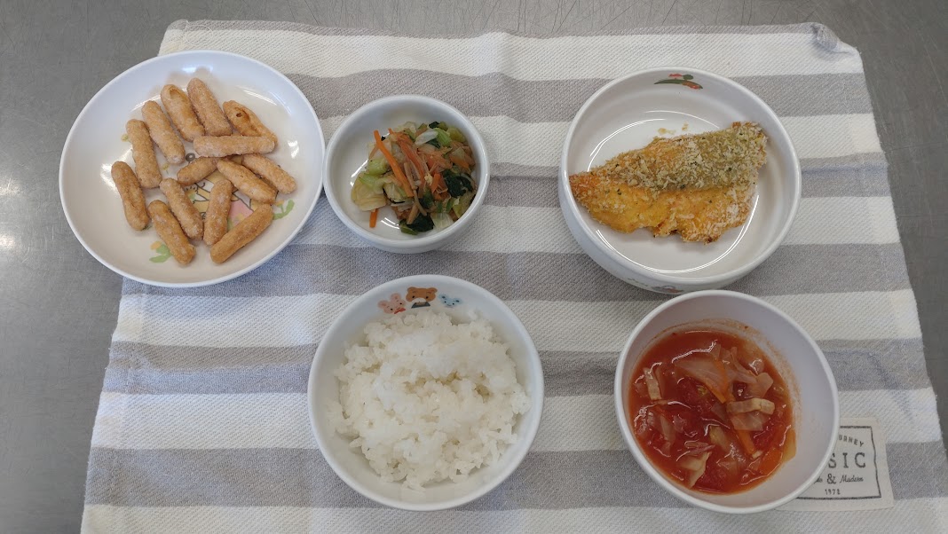 ・魚のパン粉焼き ・なめたけ和え ・トマトスープ