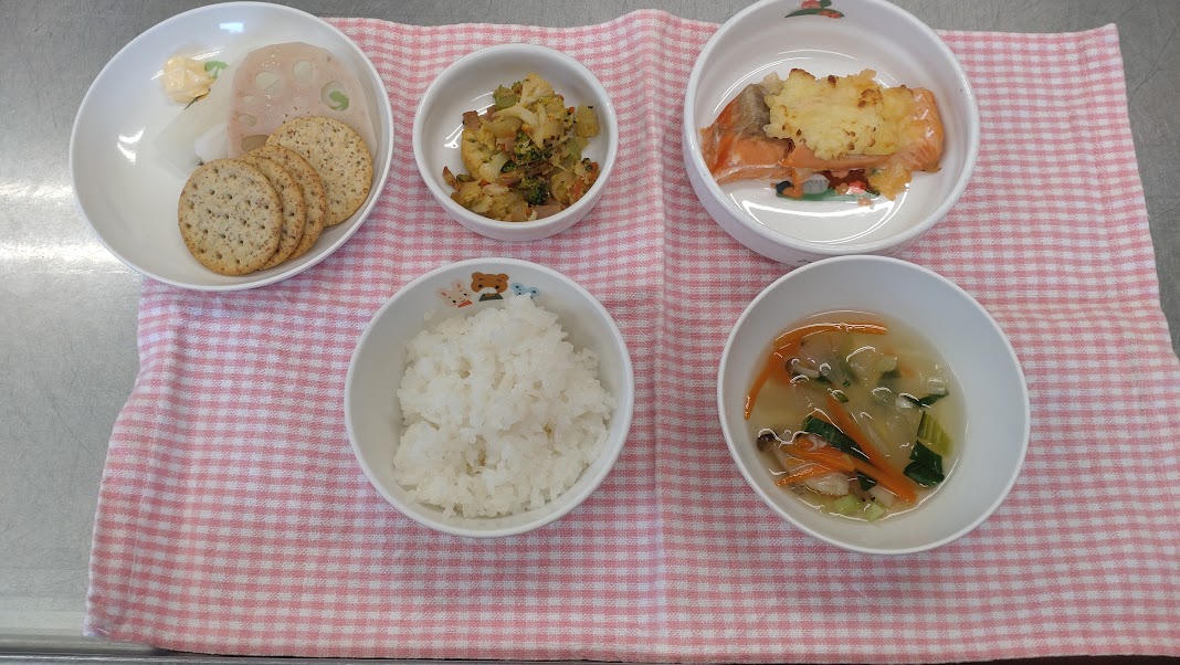 ・チンゲン菜のスープ ・野菜スティック、クラッカー