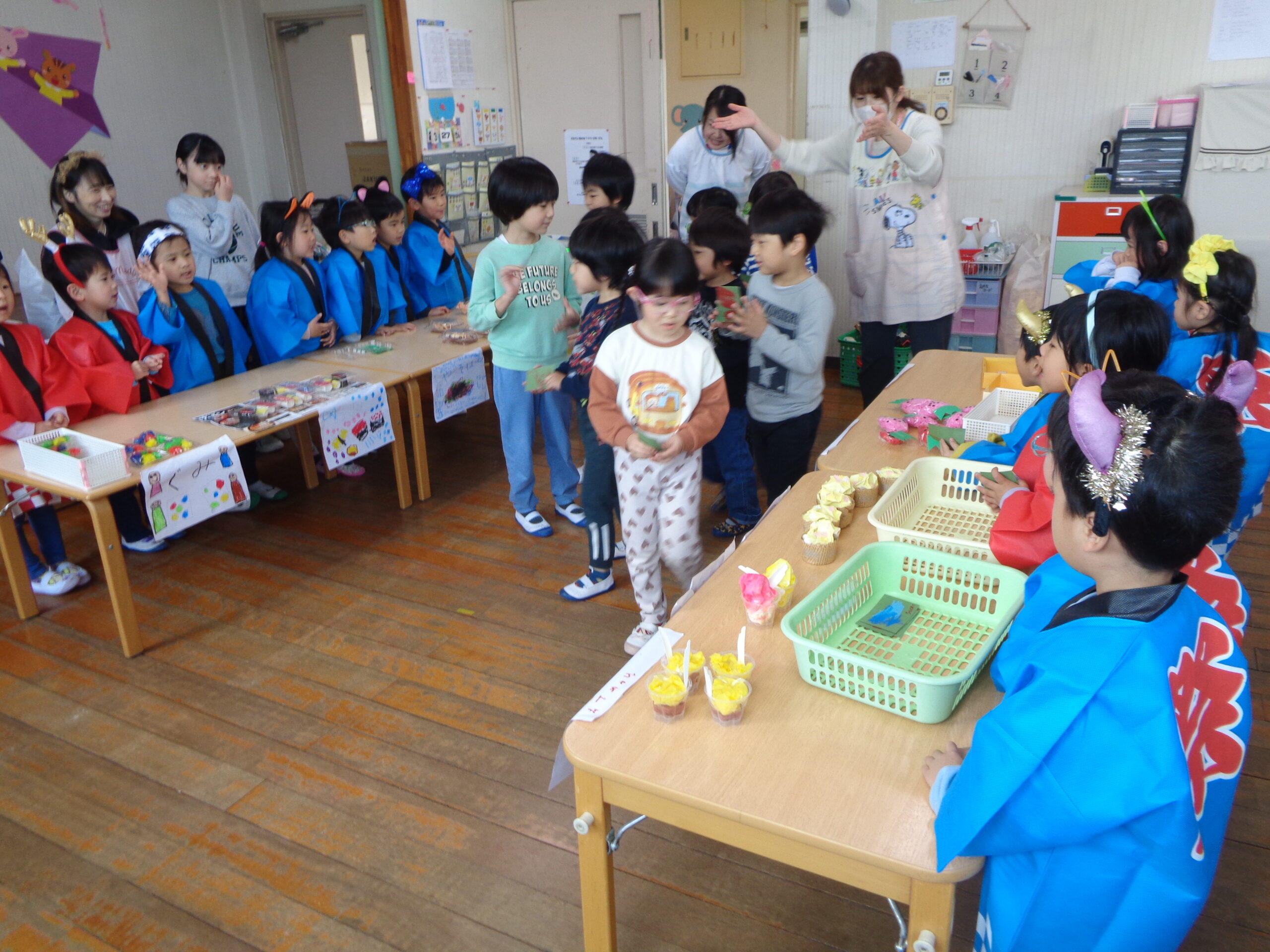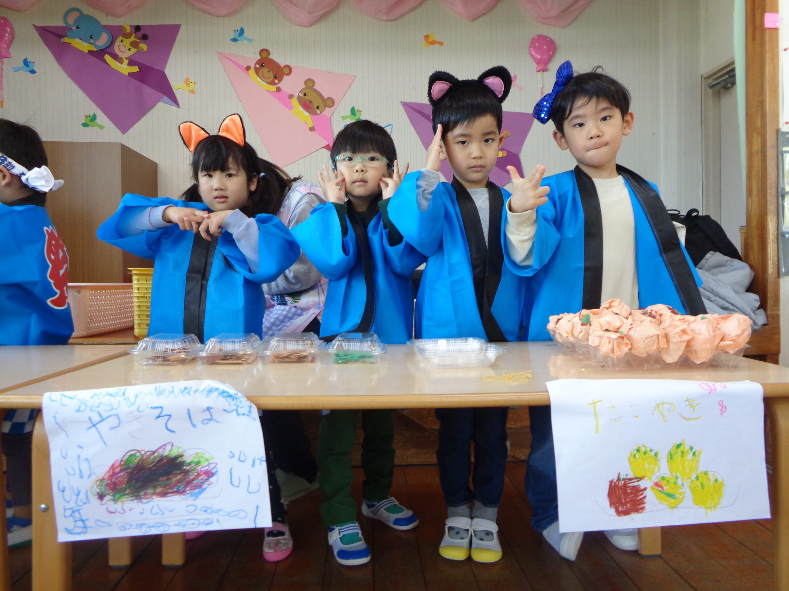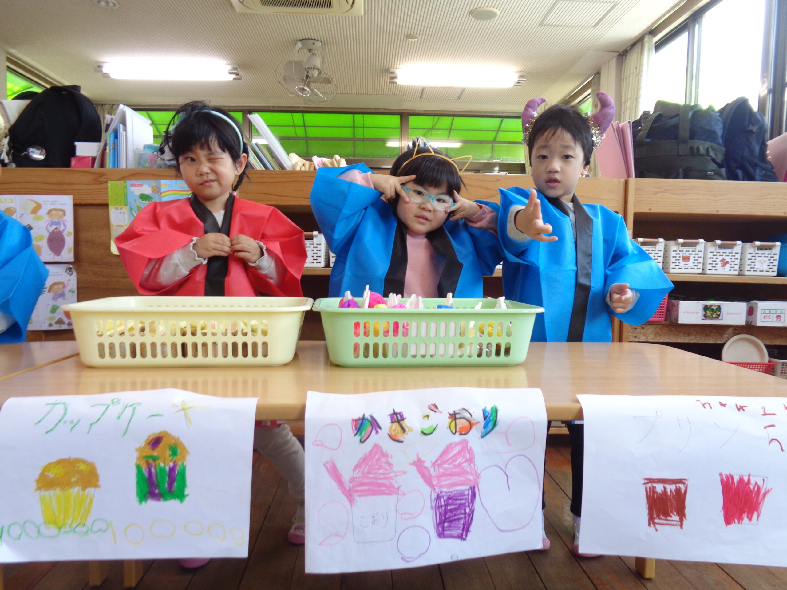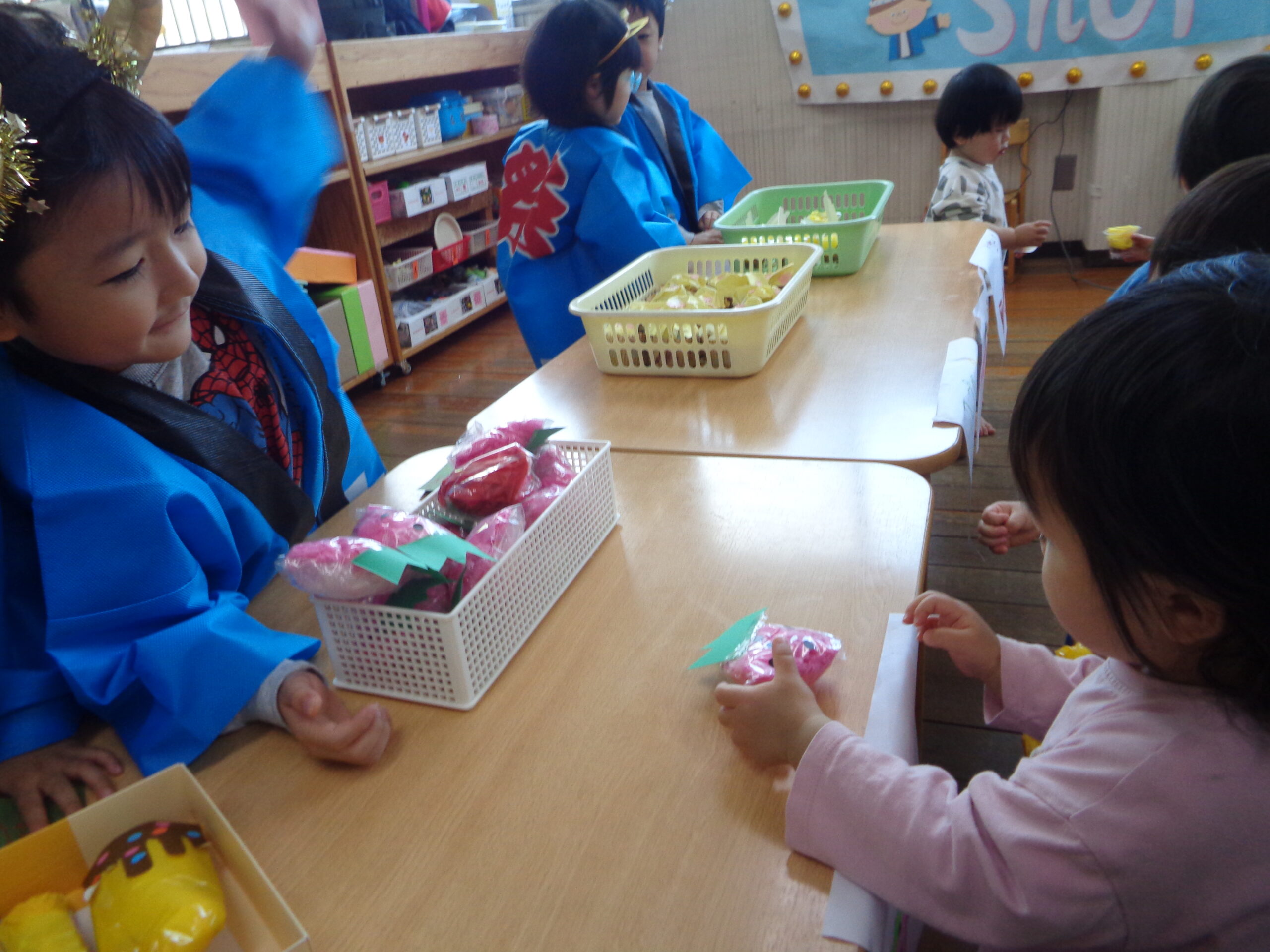 いよいよ当日!お家でも「お店屋さんごっこ」の話題でもちきりだったようで、部屋に入るなり、「先生、今日だね!」といつもに増して笑顔で登園のくま組さん!