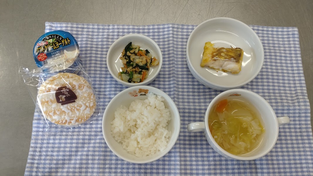 ・魚のカレー焼き ・納豆和え ・野菜スープ