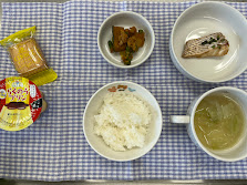 ・魚の香味焼き・南瓜のそぼろ煮・キャベツの味噌汁