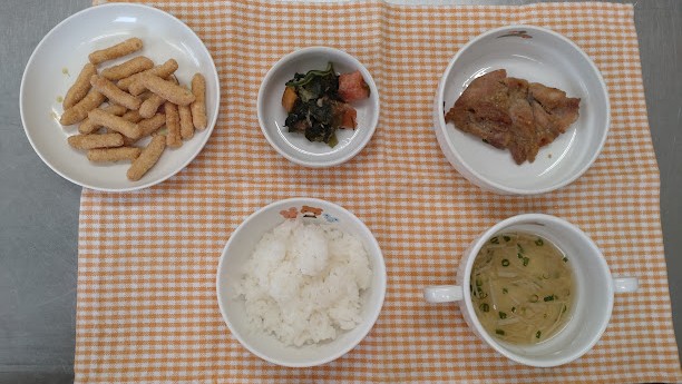 ・鶏のごまみそ焼き ・海藻サラダ ・エノキのお吸い物