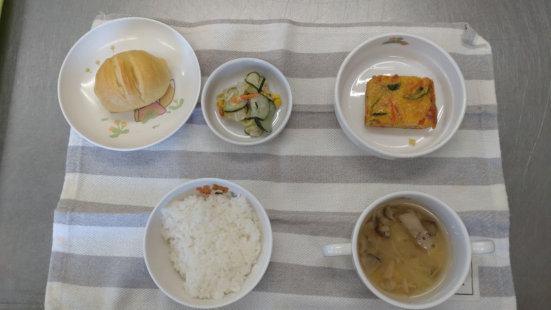 ・スパニッシュオムレツ・コールスローサラダ・きのこスープ