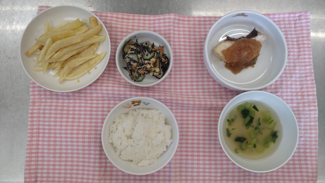 ・魚の玉ねぎソースかけ ・ひじきサラダ ・大根味噌汁