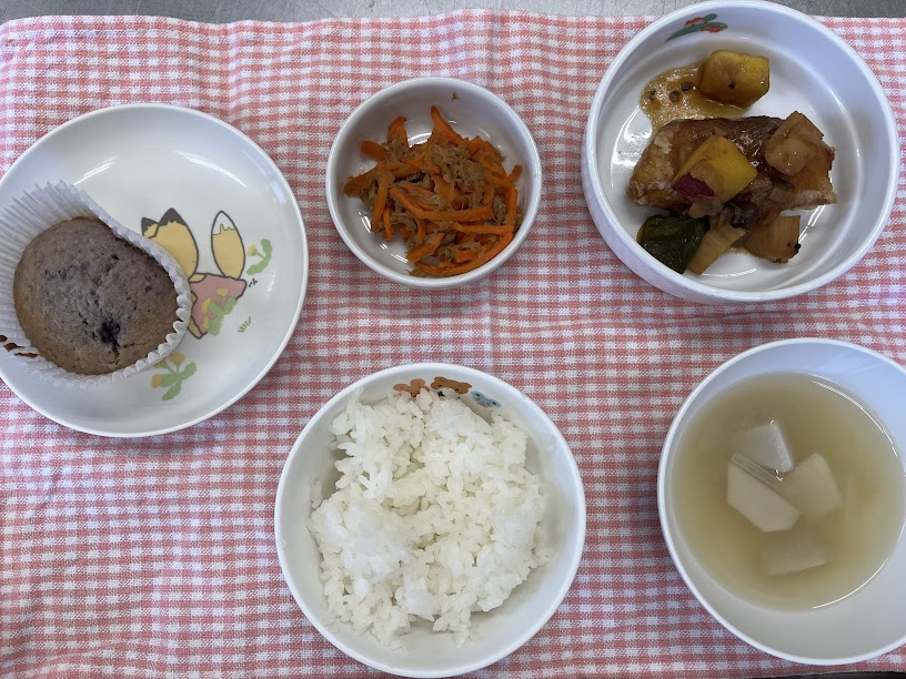 ・タイと秋野菜の甘酢あん・人参しりしり・里芋の味噌汁