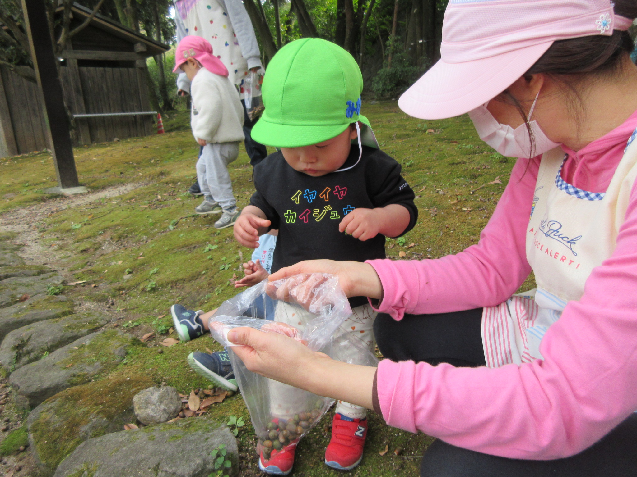 どんぐりを探してバックに入れる度に「コロン」と音が鳴ることが嬉しく、夢中で探していました!