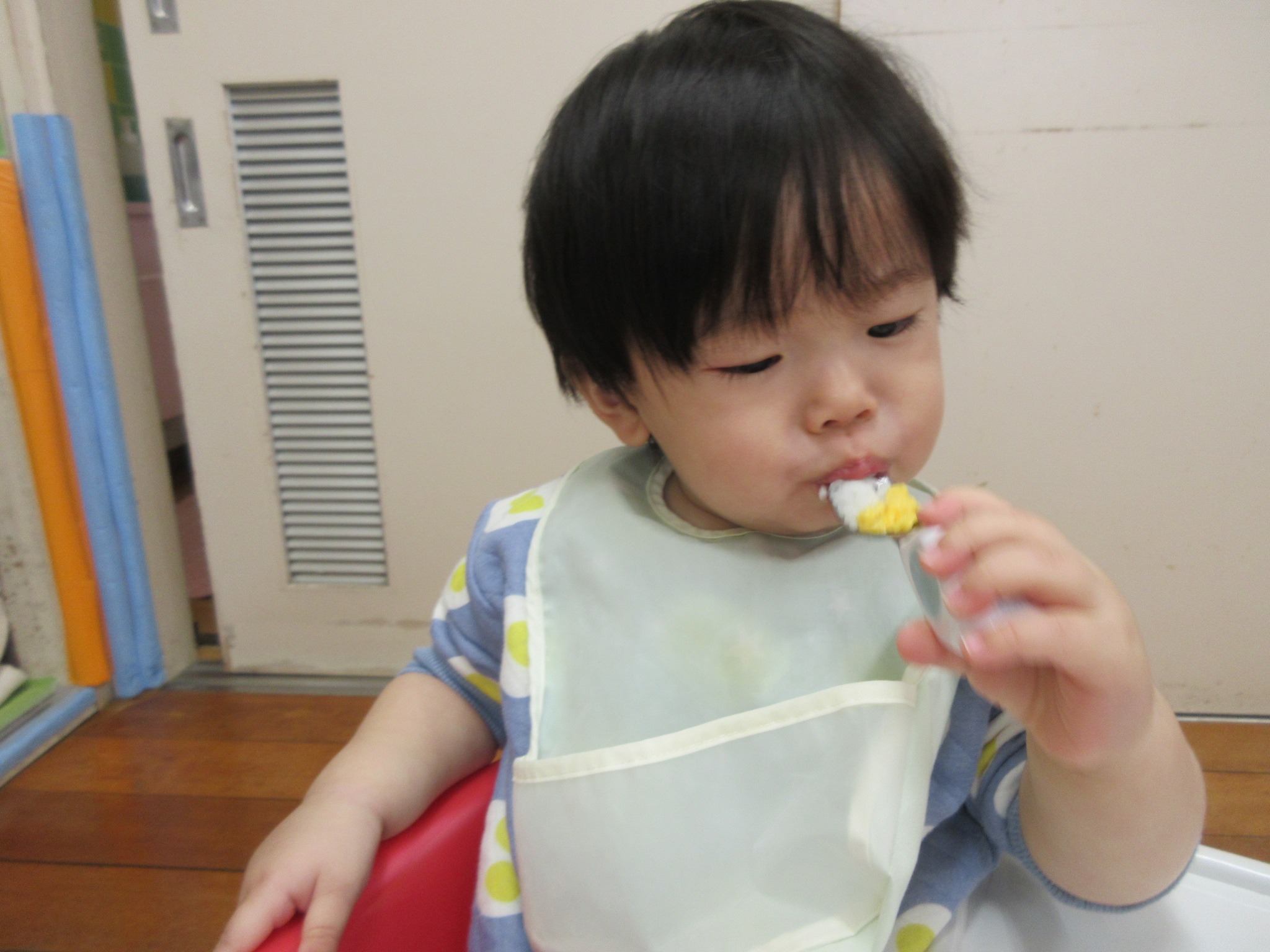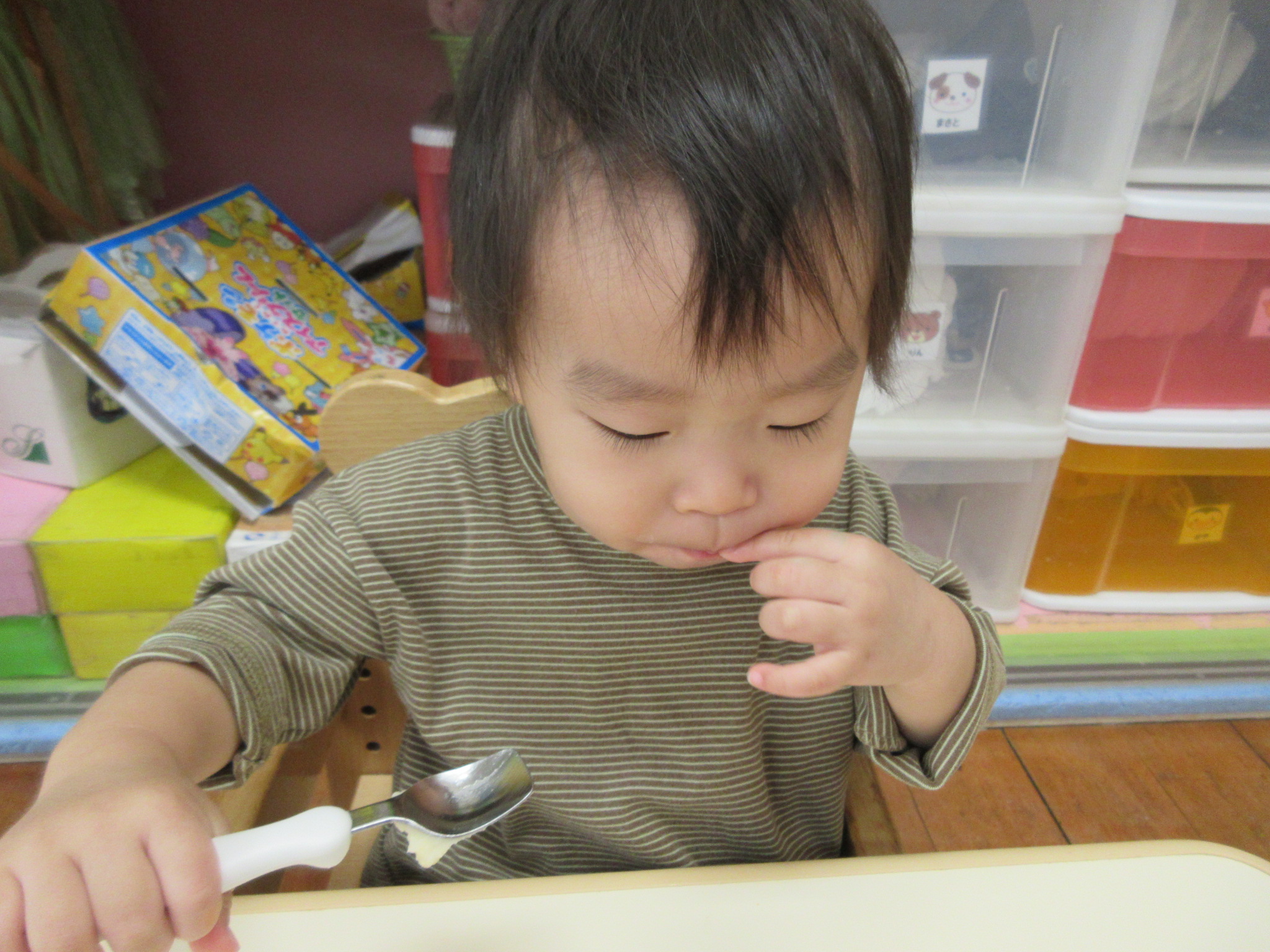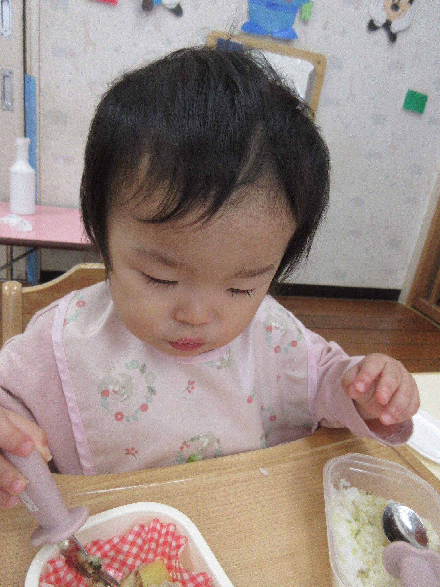 お肉やごはんなど、それぞれ自分たちの好きな食べ物をパクパク食べる子どもたち🎵