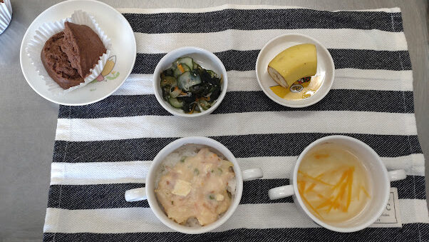 ・魚のみかん焼き ・青菜とコーンのサラダ ・豆腐の味噌汁